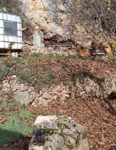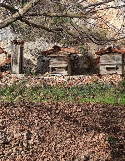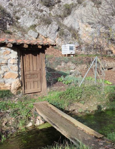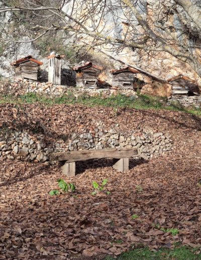 Descripción: Se trata de un colmenar junto a una pequeña huerta, el sitio está tapiado por uno de los laterales y el otro tiene el canal del arroyo como imposibilidad de acceso al mismo. En él podemos encontrar varias colmenas de cajón los cuales son artesanales completamente y un Dujo, a todos ellos se les ve que tienen ya bastante tiempo, aunque se les ve bien conservados, pues se nota que la huerta se sigue cultivando.