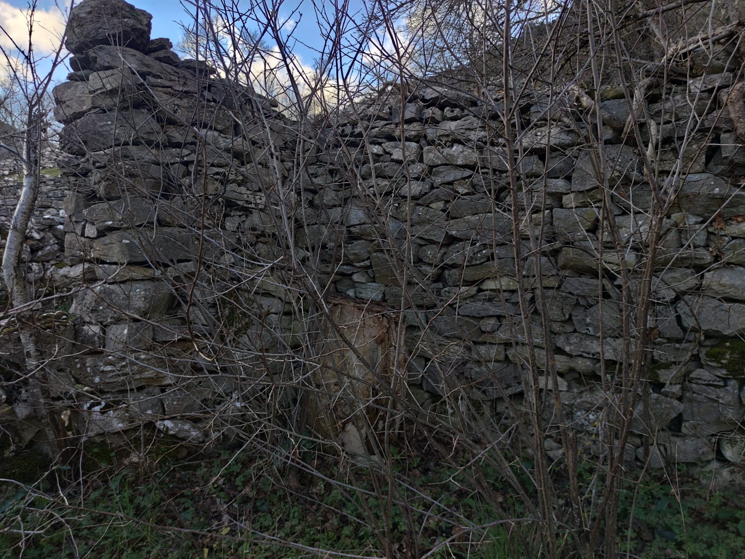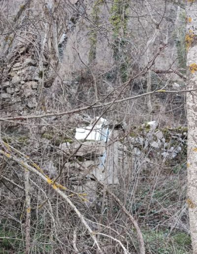 Descripción: Se trata de un colmenar en bastante mal estado, mantiene las paredes del mismo, pero se ha caído la techumbre, dentro del habitáculo aunque se le ha retirado ya los restos del techo, encontramos un Dujo, aunque vemos y apreciamos en alrededor de esta finca, que esa zona era utilizada como colmenar más amplio. en este caso el techo era algo más alto, que lo que solemos encontrar en la zona,