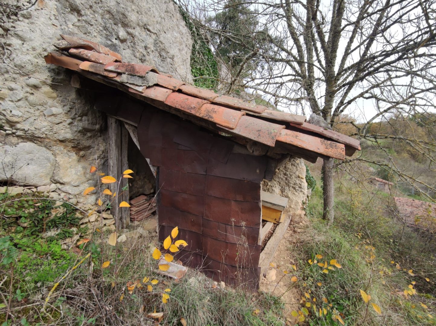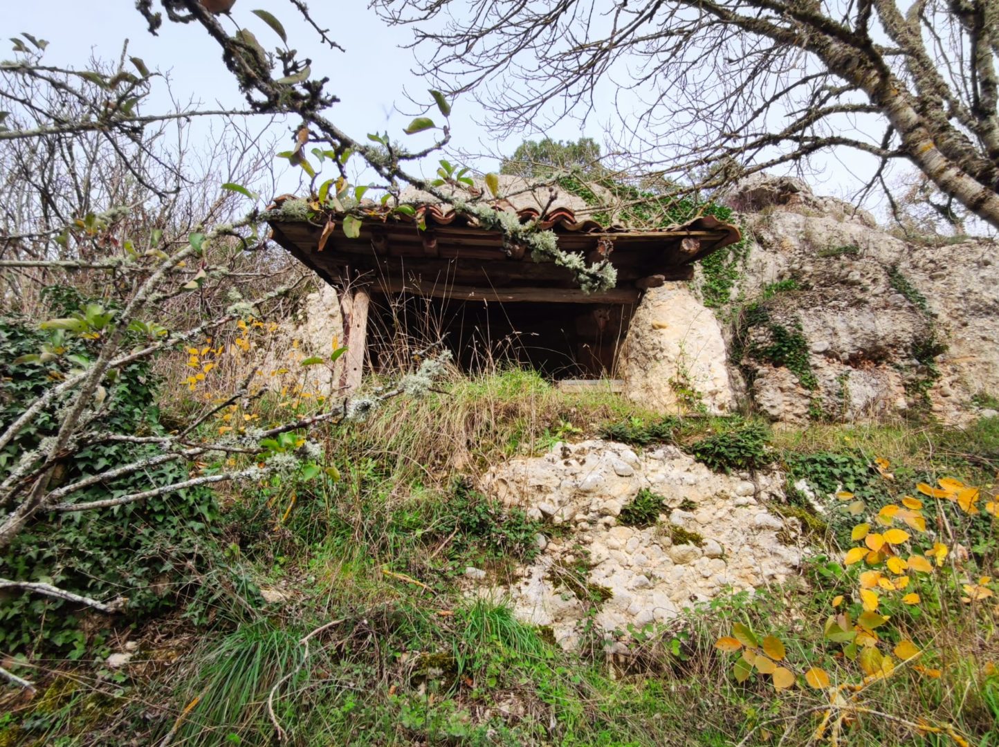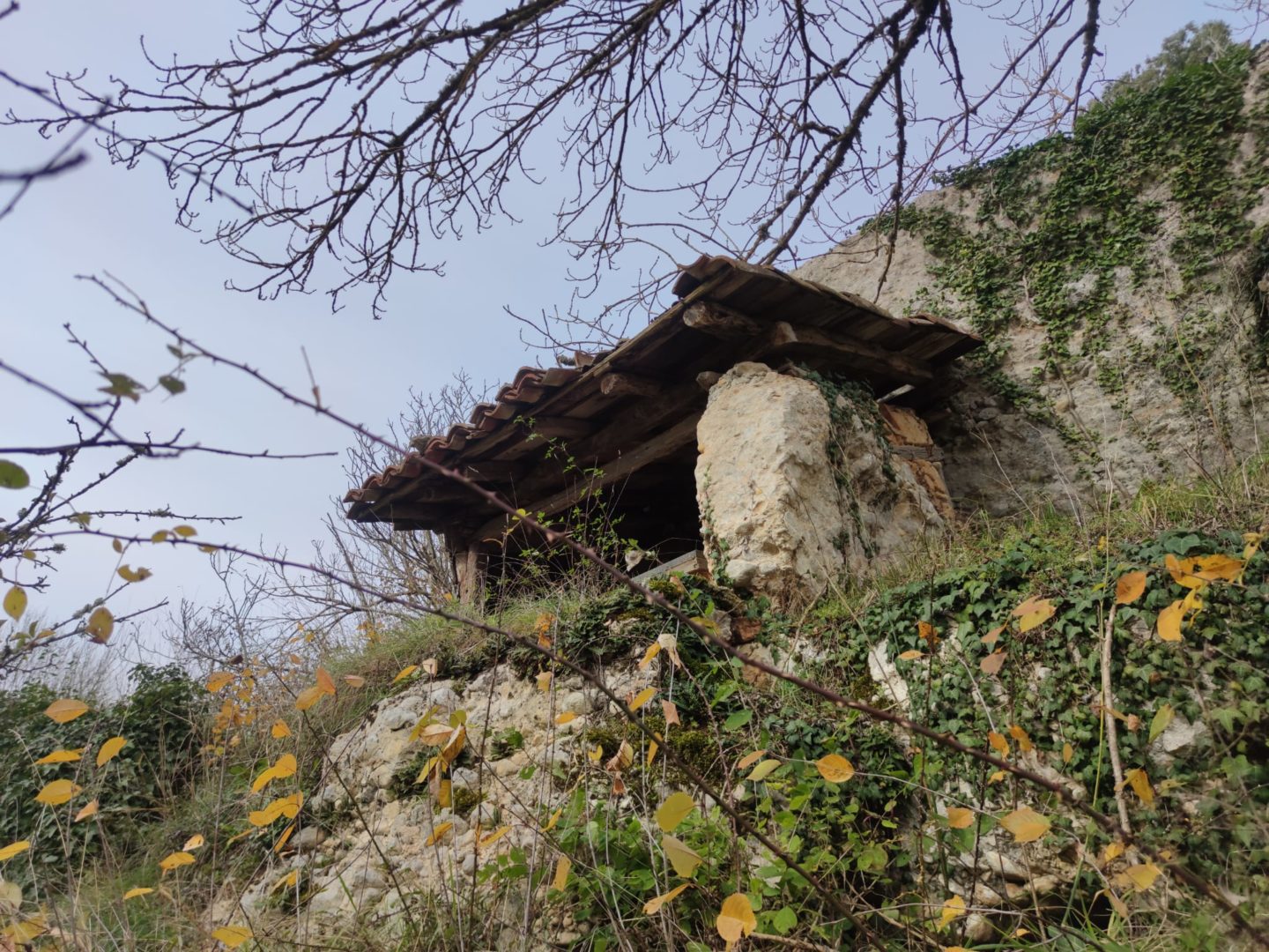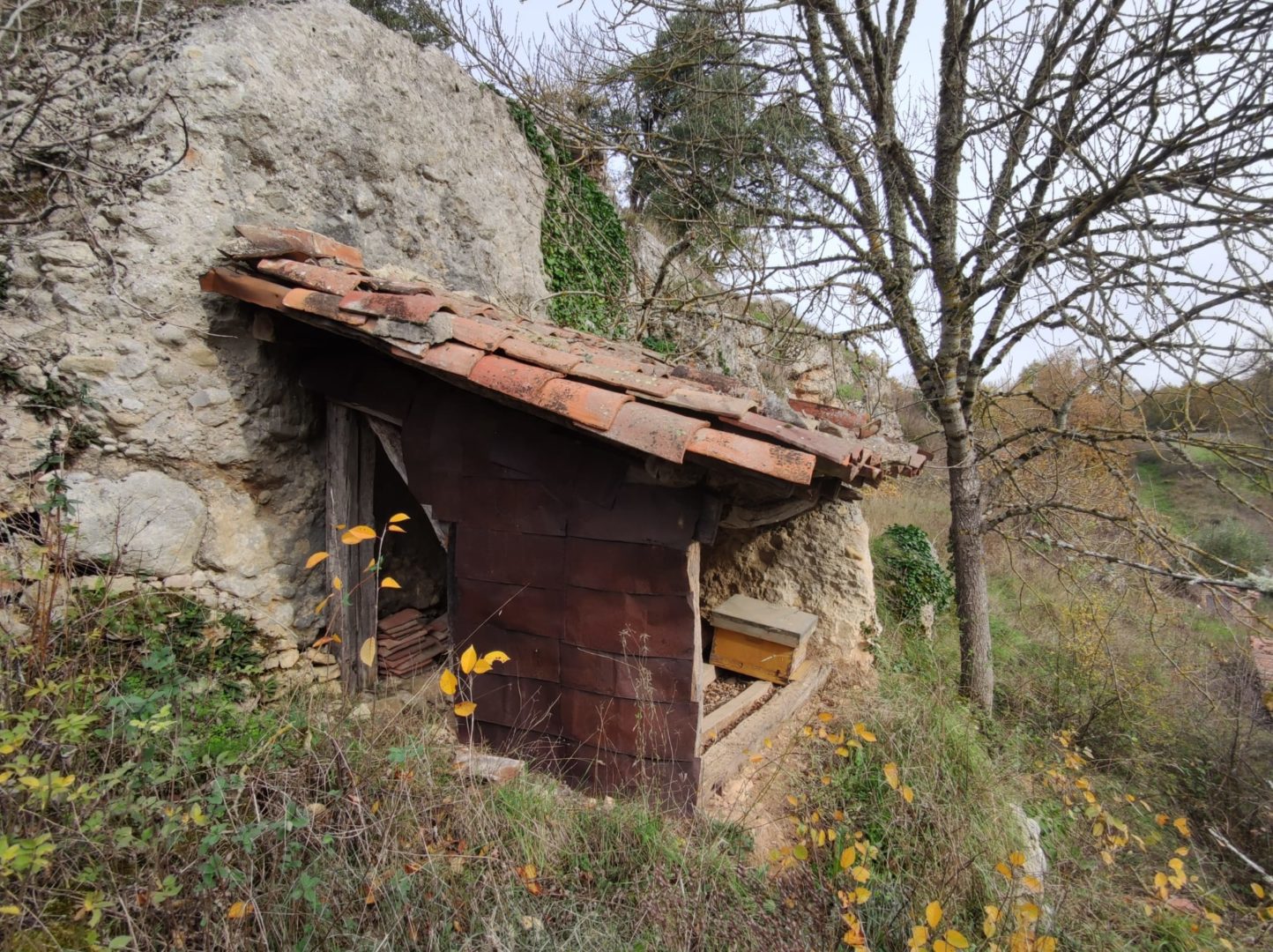 Descripción: Se trata de una construcción diseñada y realizada para albergar colmenas, en una huerta con frutales y en la zona más elevada de la misma, pegada a la roca, se ha generado un pequeño espacio para colmenas que ha podido ir variando en su uso, aunque solo encontramos una colmena moderna,ha podido albergar Dujos tanto de pie como tumbados, aunque por la situación y amplitud del mismo en su interior y una pequeña zona aledaña a la misma construcción con ese fin.