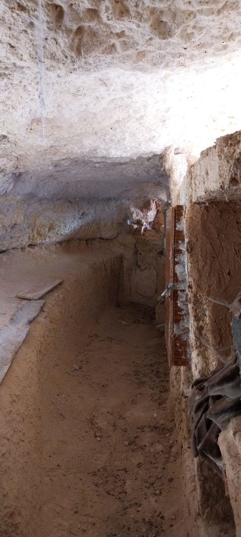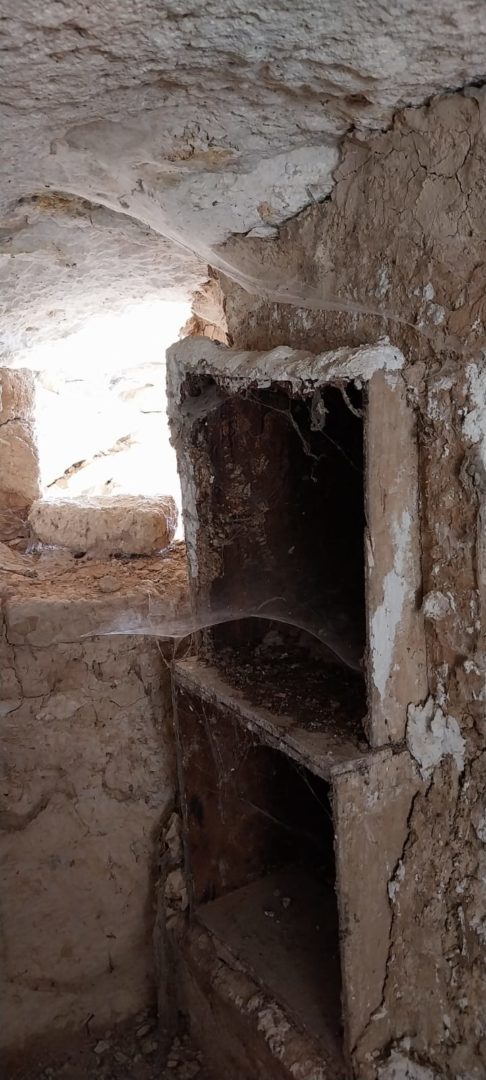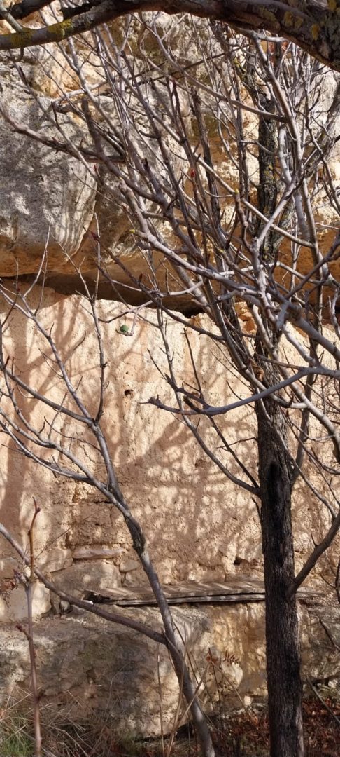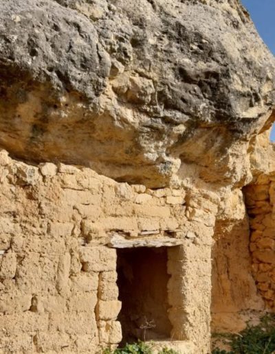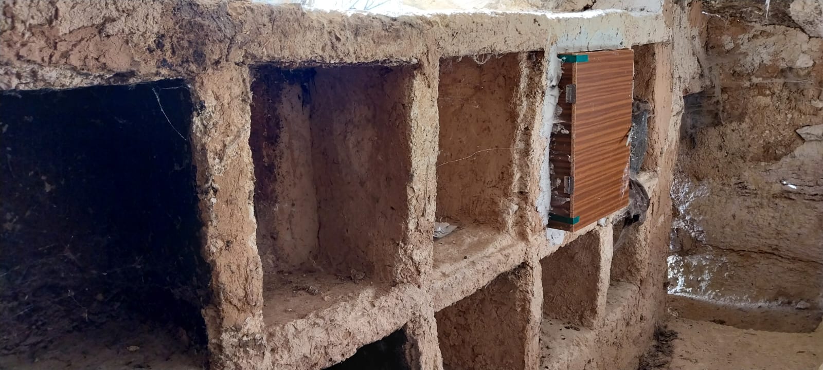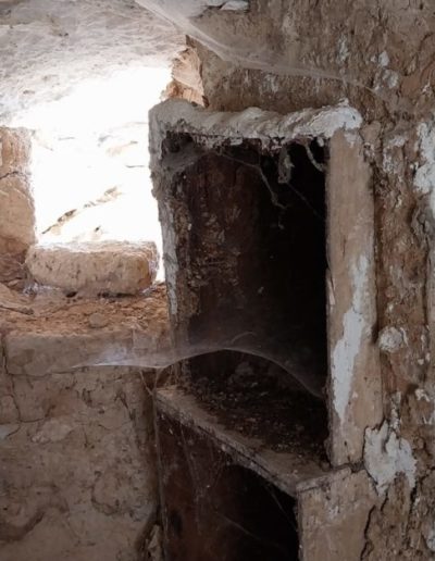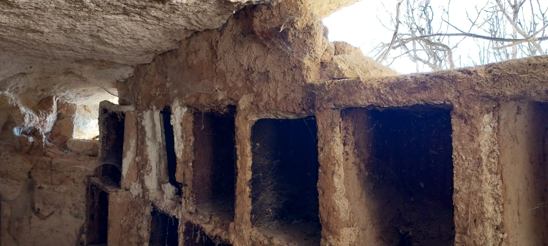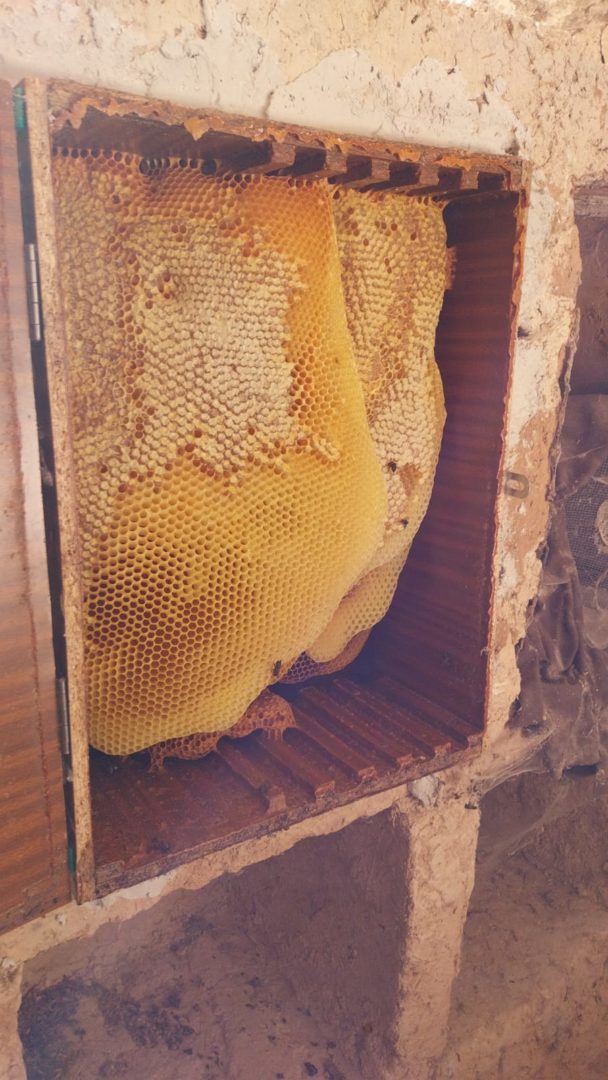 Descripción: En un recinto vallado se encuentra una cavidad en la montaña, está se ha cerrado con una pared de Adobe. Tiene una pequeña puerta donde se entra para recolectar la miel que están en unas colmenas rectangular de Adobe.