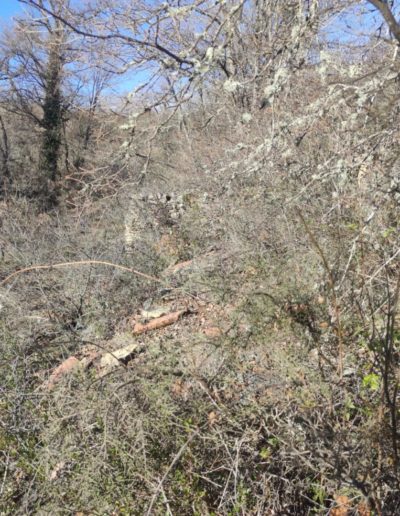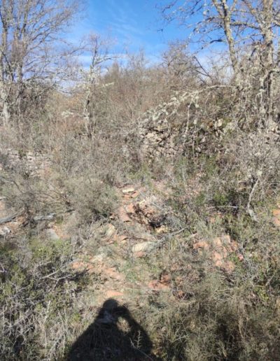 Descripción: Se trata de la ubicación de un antiguo colmenar, donde ahora solo podemos encontrar unos muros perimetrales de la existencia de una hornillera derribada y restos de Dujos y tapas exteriores de los hornillos, el muro perimetral es extenso, como para zona de una huerta de frutales y tanto la zona apícola como el terreno se los ve abandonados hace tiempo.