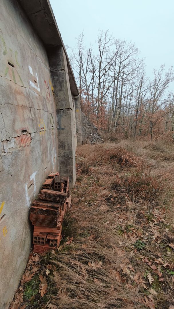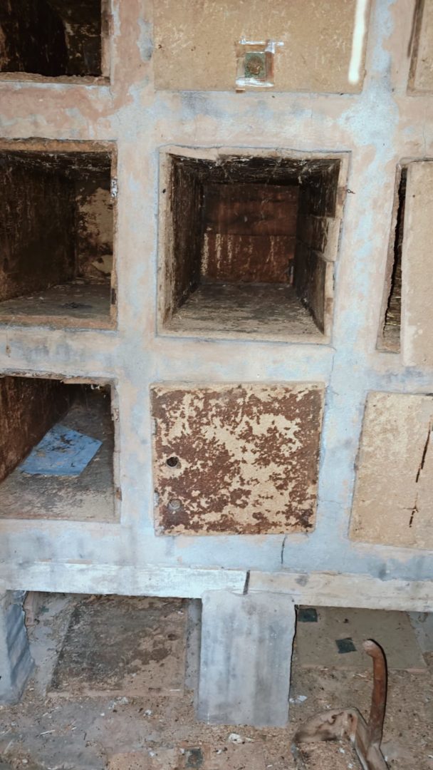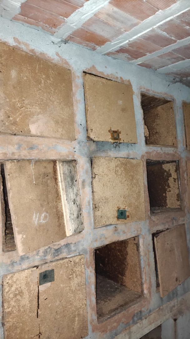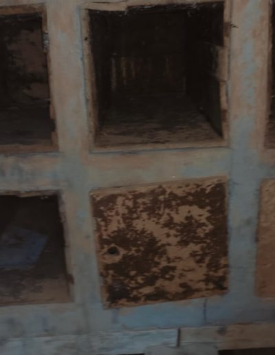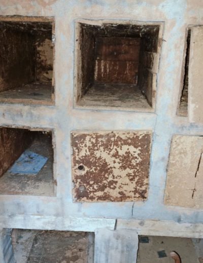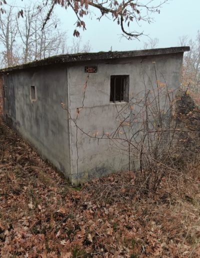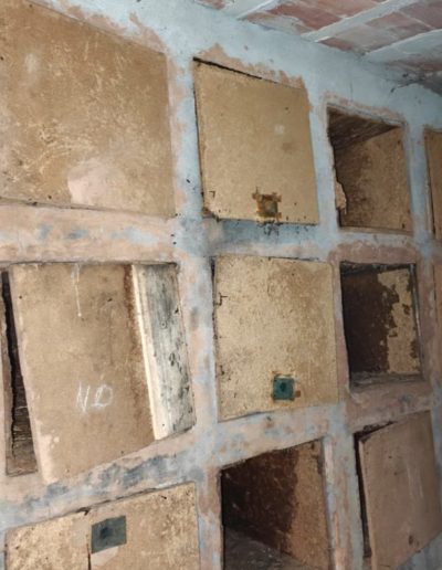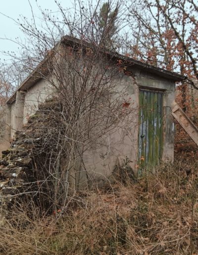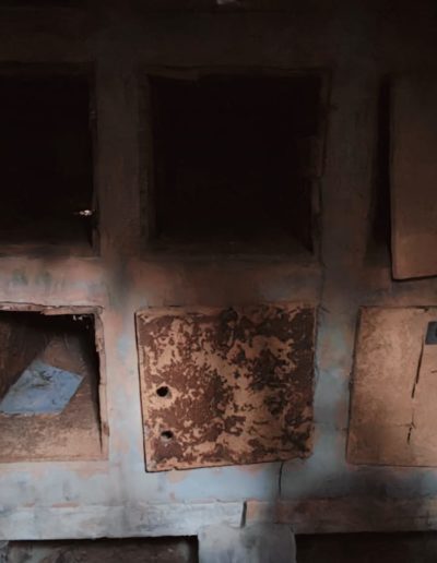 Descripción: Se trata de una hornillera moderna construida en ladrillo y cemento y en vez de Dujos se han hecho apartados de ladrillos rectangulares para ubicar las colmenas, pero encontramos que en los laterales de dicha construcción se observan unos contrafuertes laterales de piedra y que se intuye que fueran de la antigua construcción de ese mismo tipo que antiguamente pudo estar en esa misma ubicación, solo que cambiando los materiales utilizados por los actuales.
