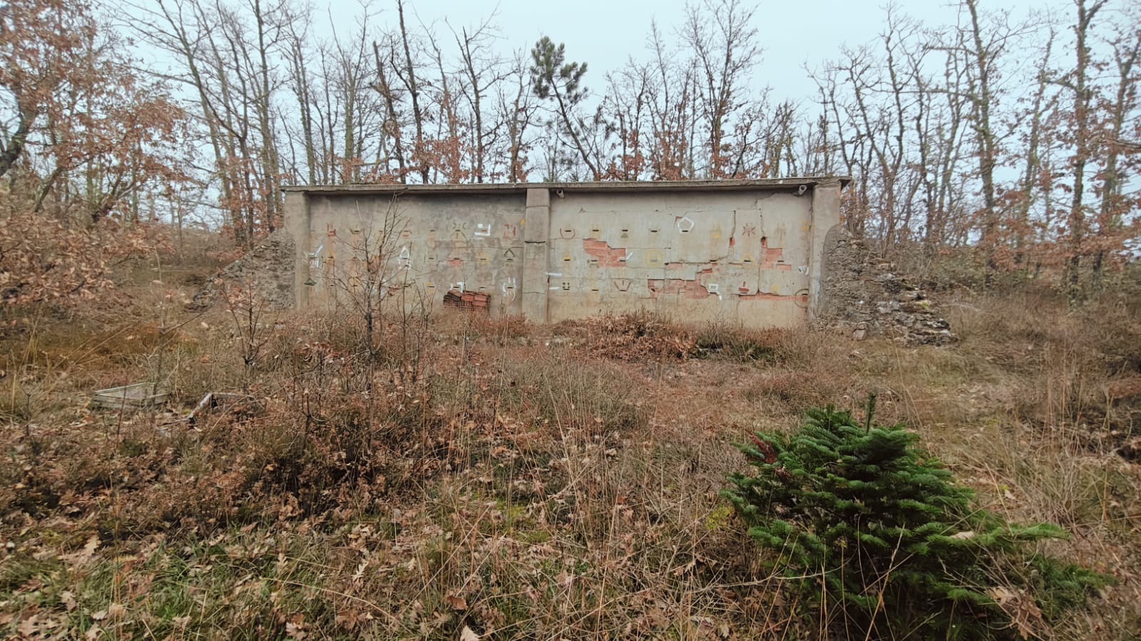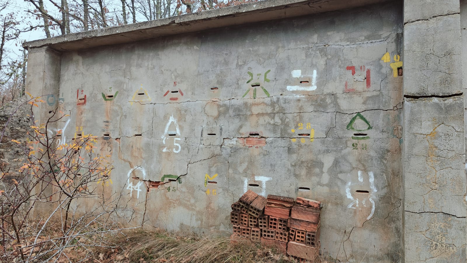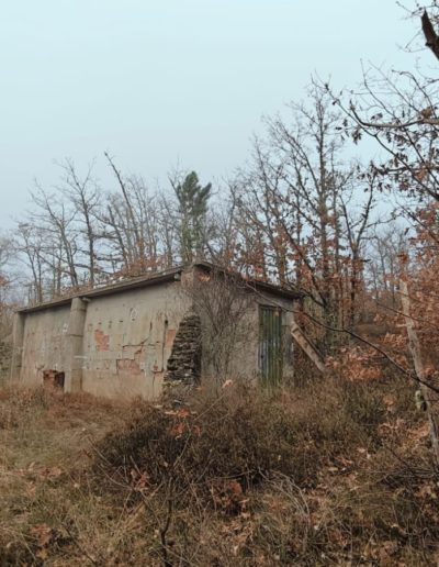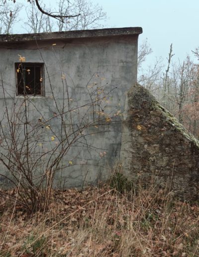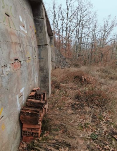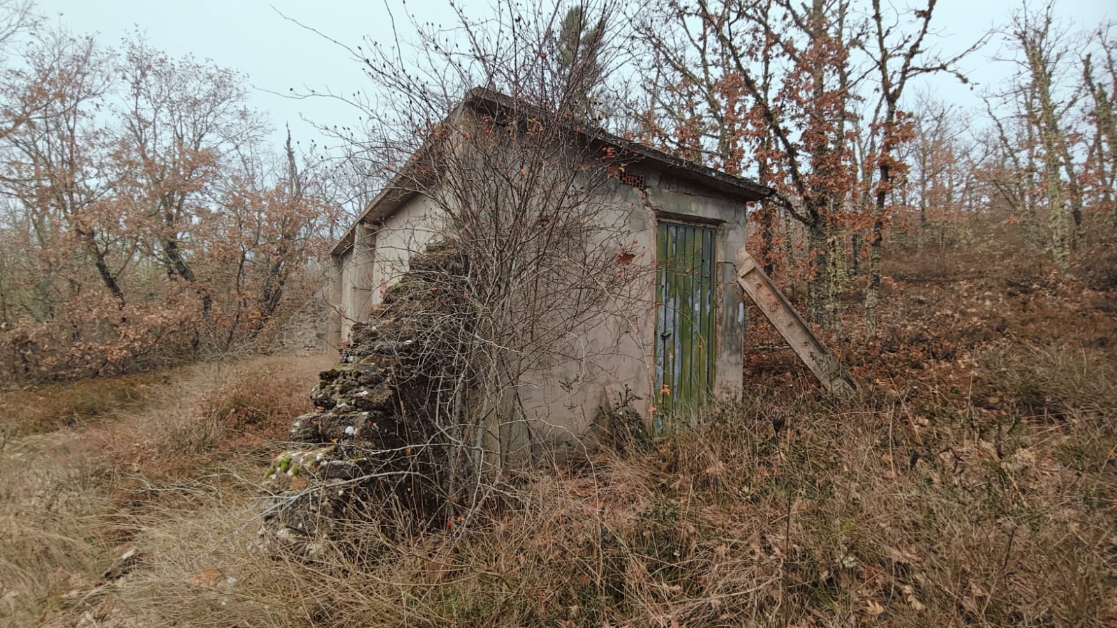 Descripción: Se trata de una hornillera moderna construida en ladrillo y cemento y en vez de Dujos se han hecho apartados de ladrillos rectangulares para ubicar las colmenas, pero encontramos que en los laterales de dicha construcción se observan unos contrafuertes laterales de piedra y que se intuye que fueran de la antigua construcción de ese mismo tipo que antiguamente pudo estar en esa misma ubicación, solo que cambiando los materiales utilizados por los actuales.