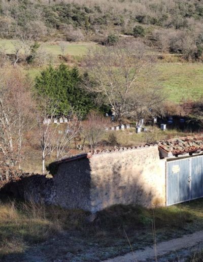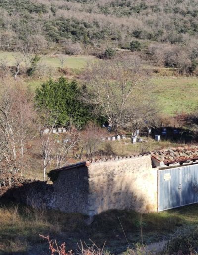 Descripción: Se trata de un colmenar tradicional con su muro perimetral, que ha sido transformado en un colmenar actual, donde se han retirado los viejos Dujos para incluir colmenas modernas, tiene una pequeña construcción adosada, donde ahora se guardan los aperos de apicultura y está ubicado en un lugar cercano a la población al lado de un camino, aunque hoy se han retirado como marca la ley las colmenas a la distancia obligatoria.