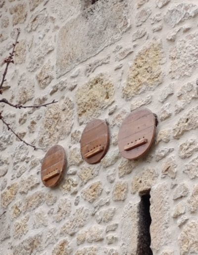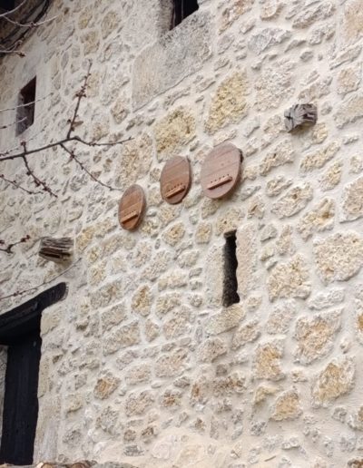 Descripción: Se trata de tres dujos insertados en la pared de una viviendo que se ha restaurado recientemente y que encontramos con que han recuperado, mantenido y transformado este elemento etnográfico, dándole el valor que se merece.