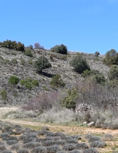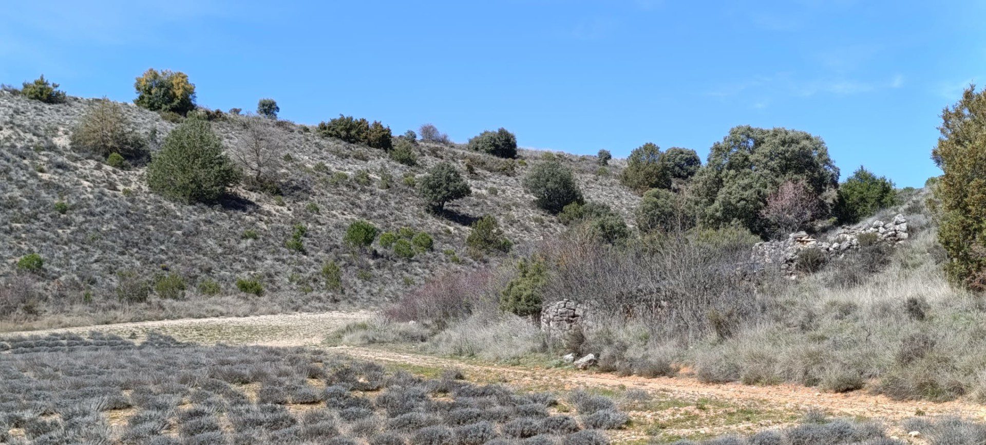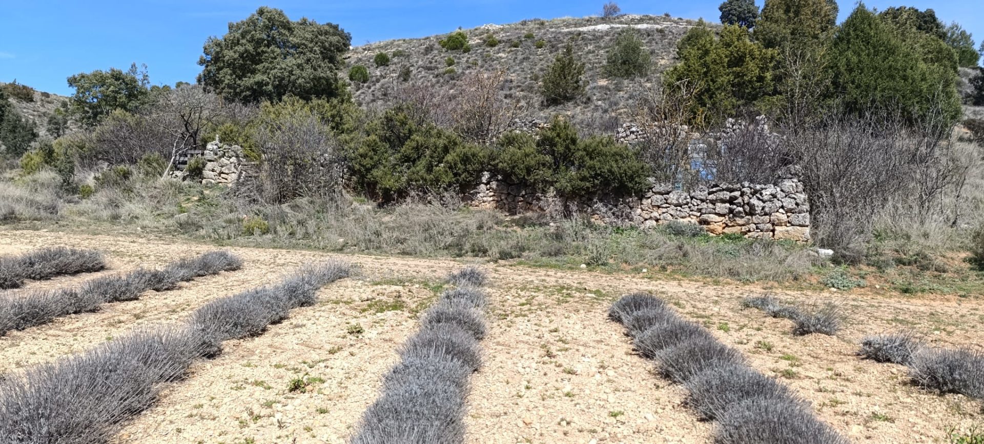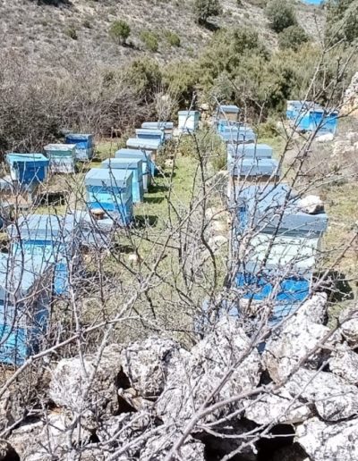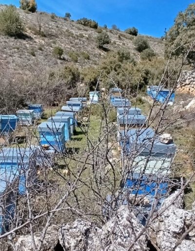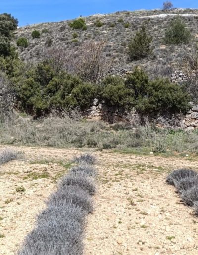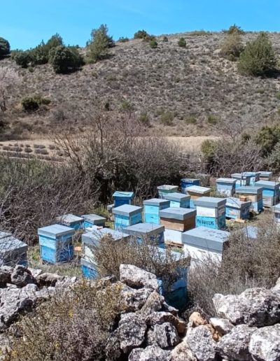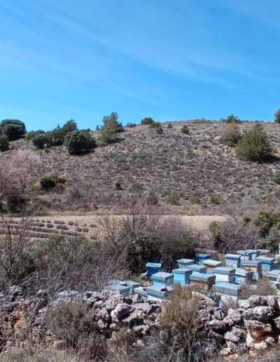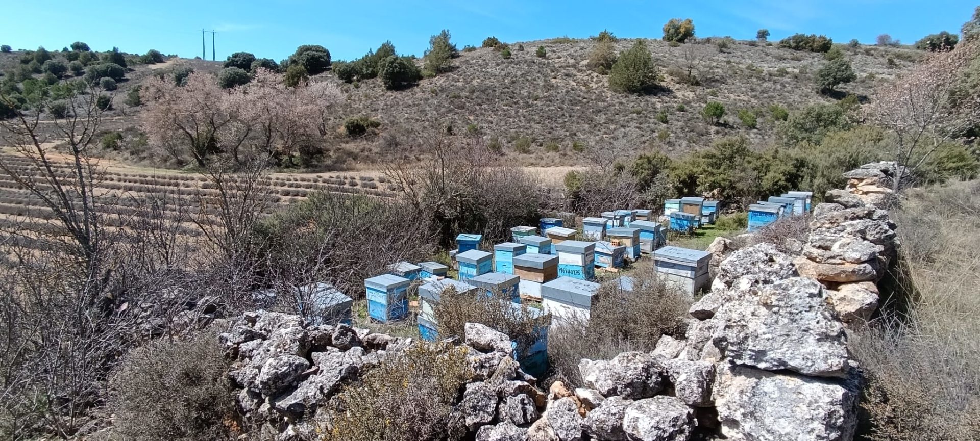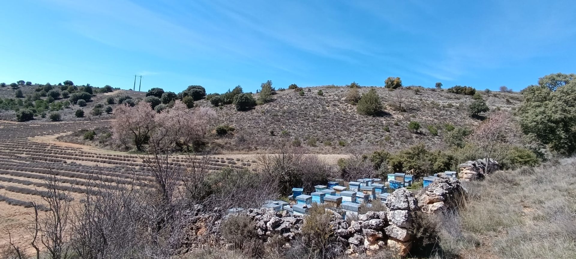 Descripción: Se trata de un colmenar que se ha transformado en una explotación apícola más moderna, donde se han retirado los Dujos y se han instalado cajas modernas, pero el colmenar se demuestra que su ubicación ha sido históricamente productivo y que a día de hoy con los cultivos de lavanda, es algo maravilloso para la miel espectacular, manteniendo los muros perimetrales de siempre.