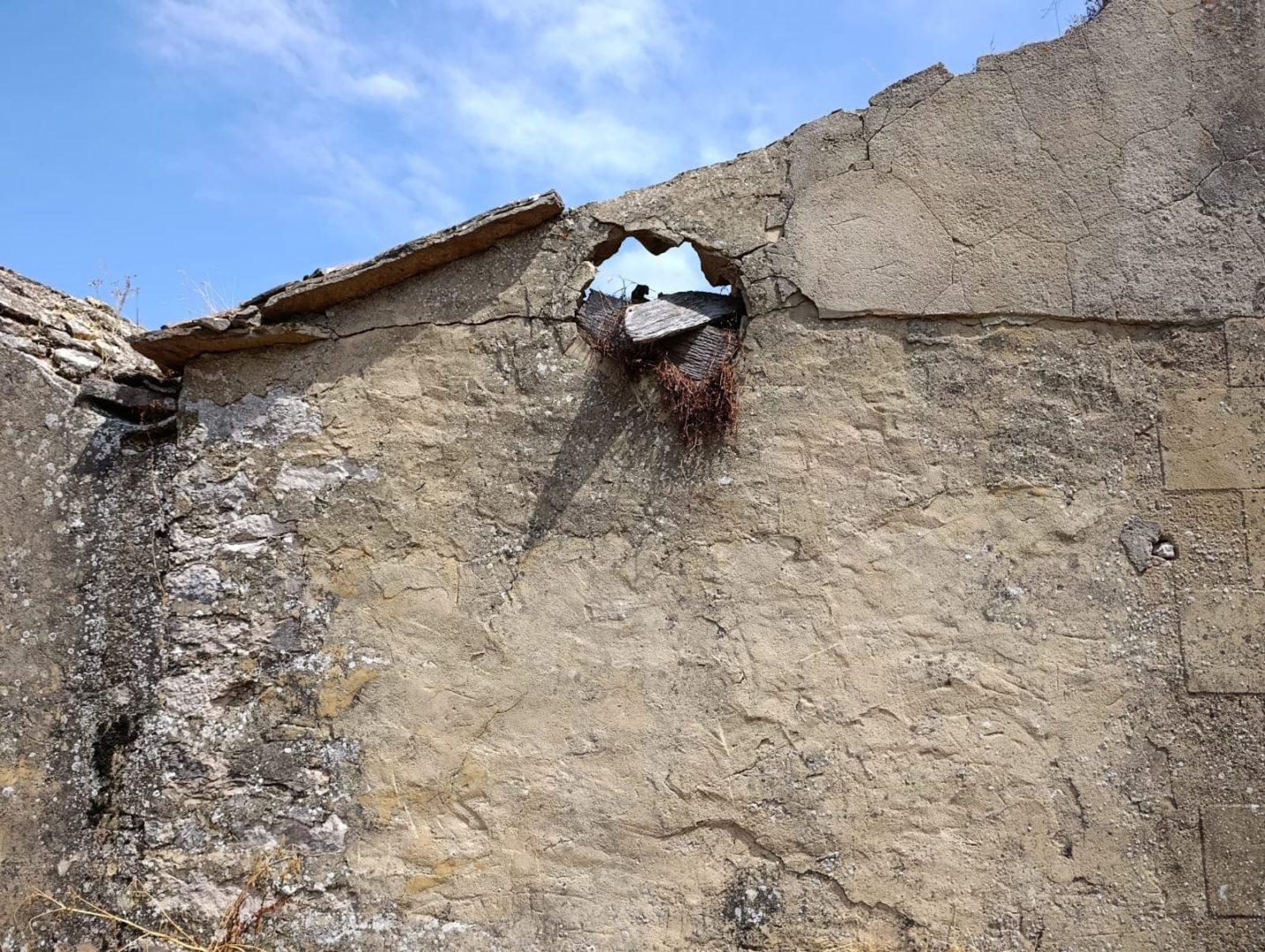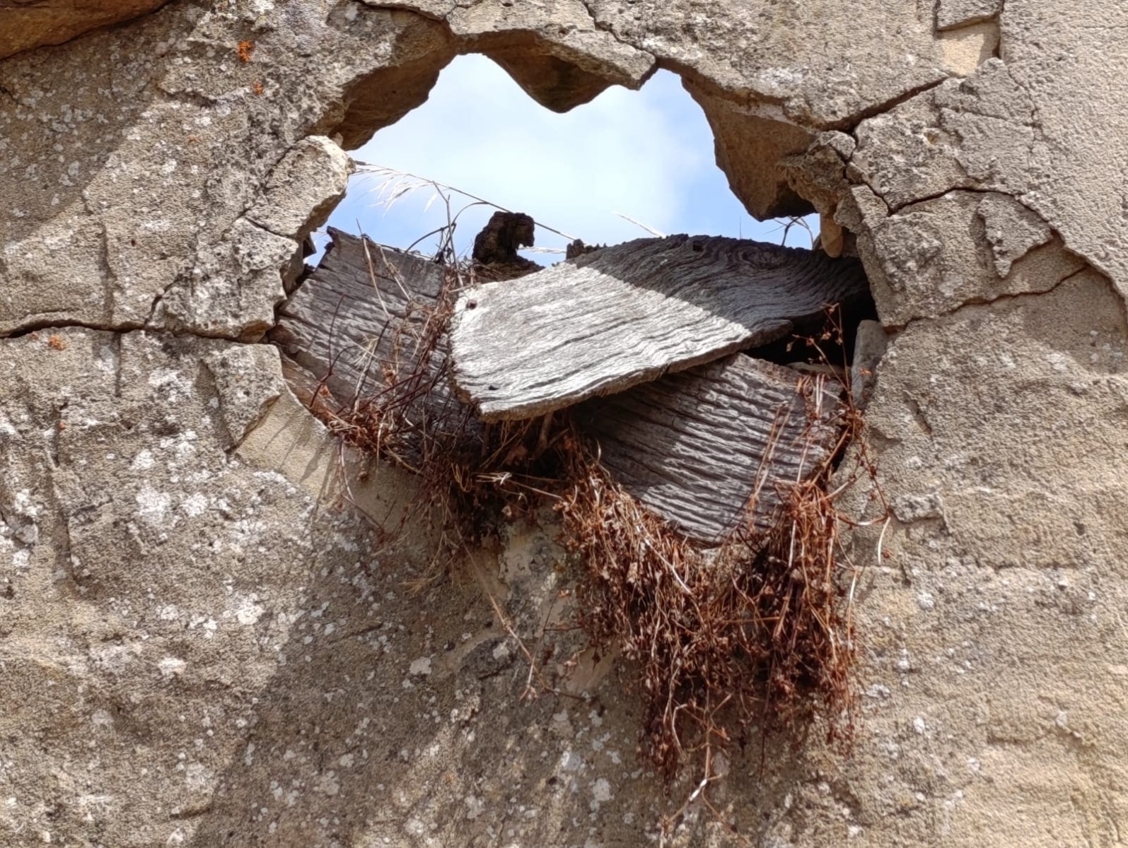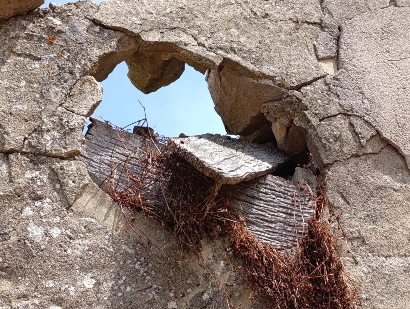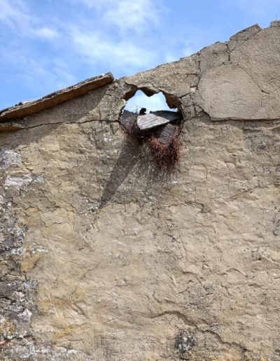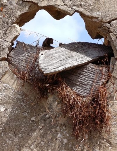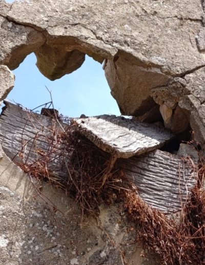 Descripción: Se trata de una colmena dentro de un antiguo pajar que esta en ruinas, del que solo nos queda los vestigiios de la tapa del dujo externa