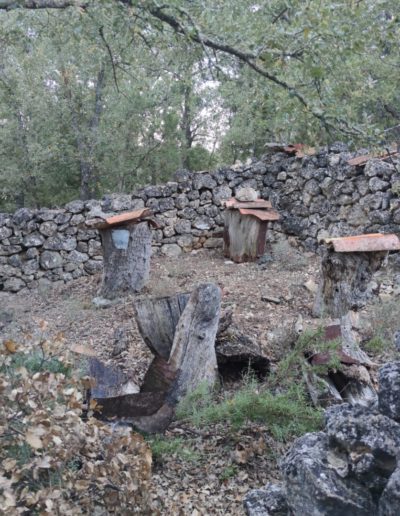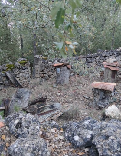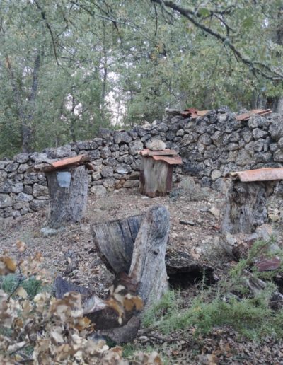 Descripción: Se trata de un colmenar de los típicos de esta zona, bien situado y recubierto de vegetación que apenas se percibe, su situación no entra entre los que están dispuestos arreglarse de momento, ya que su dueño no accedido al mismo, aunque esperemos que pronto pueda estar en las condiciones más óptimas.