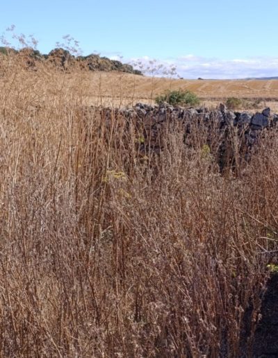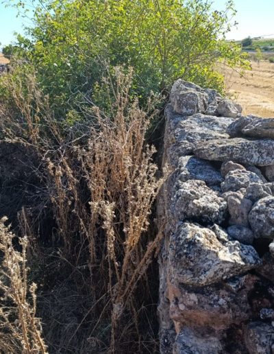 Descripción: Se trata de la antigua ubicación de un colmenar juntos a las tierras de cultivo, actualmente solo queda presente el muro perimetral, no muy alto y en algunas zonas ya basntante degradado.