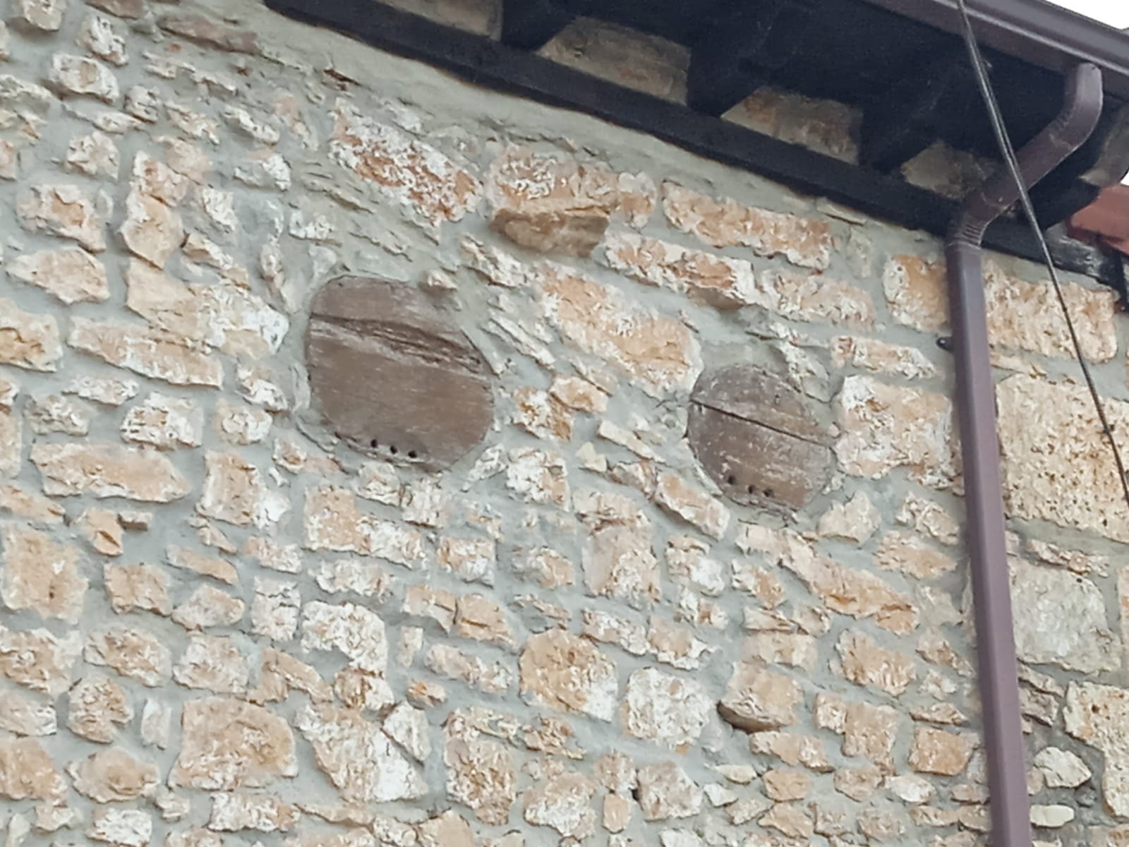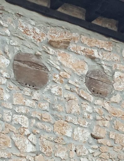 Descripción: Se trata de unos Dujos instalados en la parte alta de la vivienda, seguramente en una zona que se utilizaba como pajar o almacén y que con ello suministraba miel y cera para consumo familiar, una práctica muy habitual en la zona.