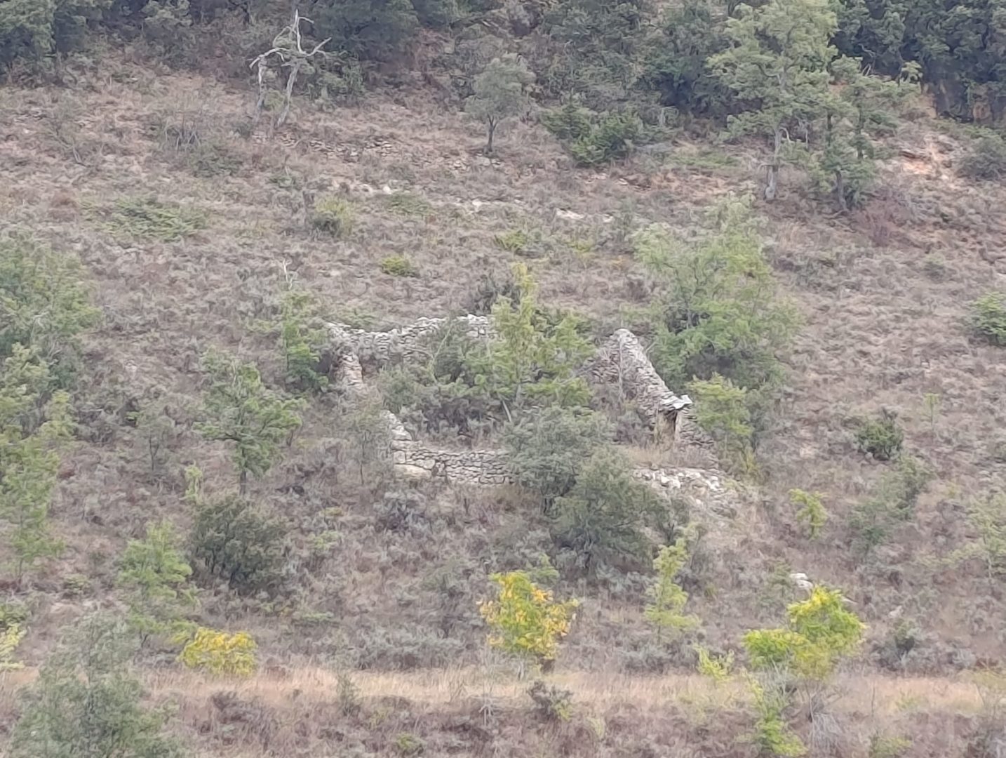 Descripción: Aunque hoy en día la vegetación se come este antiguo colmenar, lo cual es una pena enorme, todavía se observan los grandes muro que lo rodeaban con el fin de defender de los depredadores de colmenas y de los osos entre otros, Estamos en una localidad con un enorme arraigo de colmenares tradicionales, un enorme patrimonio del cual no encontramos muchos lugares en la provincia, este en concreto necesita un buen repaso y seguro que algo conseguiríamos encontrar dentro.