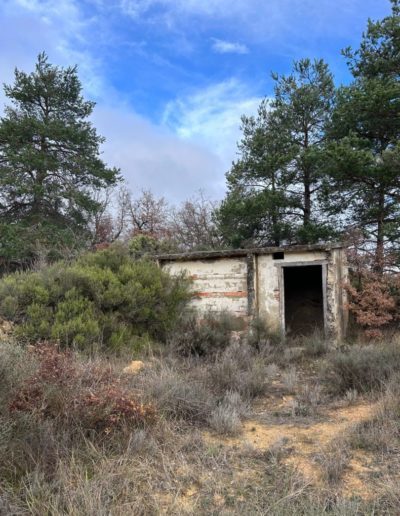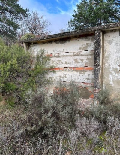 Descripción: Nos encontramos frente al colmenar de Don Fabián, el que era el párroco del pueblo en los años 50, que realizo esta hornillera con ladrillos, posiblemente proveniente del conocimiento que tendría el de su lugar de origen y que aplico en esta zona cuando estuvo de párroco, para seguir haciendo la labor de apicultura que conocía.