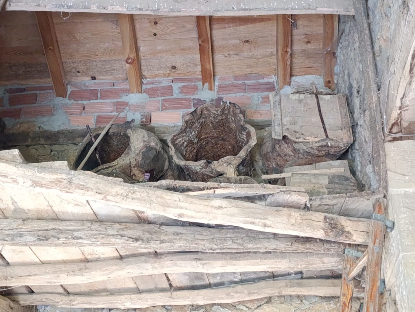 Descripción: Se trata de unos antiguos Dujos insertados en el pajar de la familia y elevados para poder trabajar y catas a los Dujos, seis mirando al sureste y otros 3 mirando al noreste en distintas paredes.
