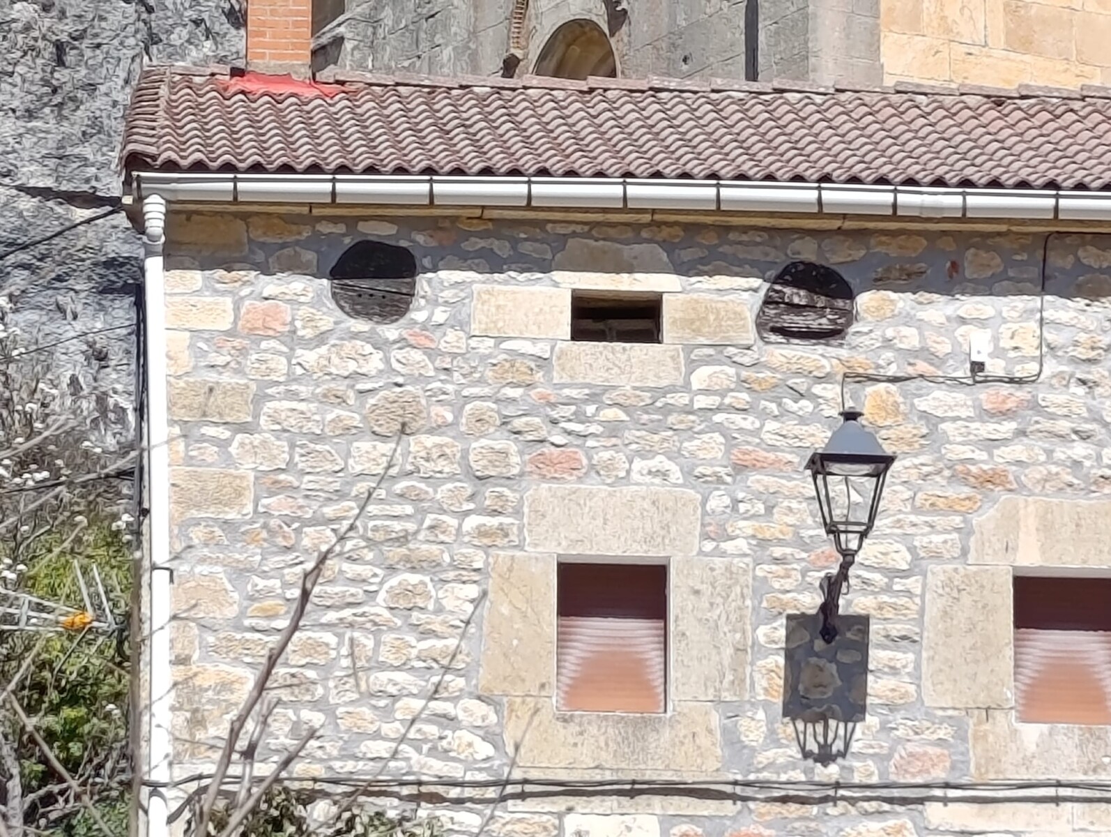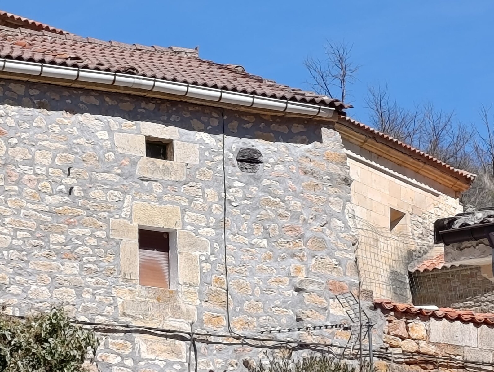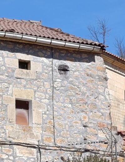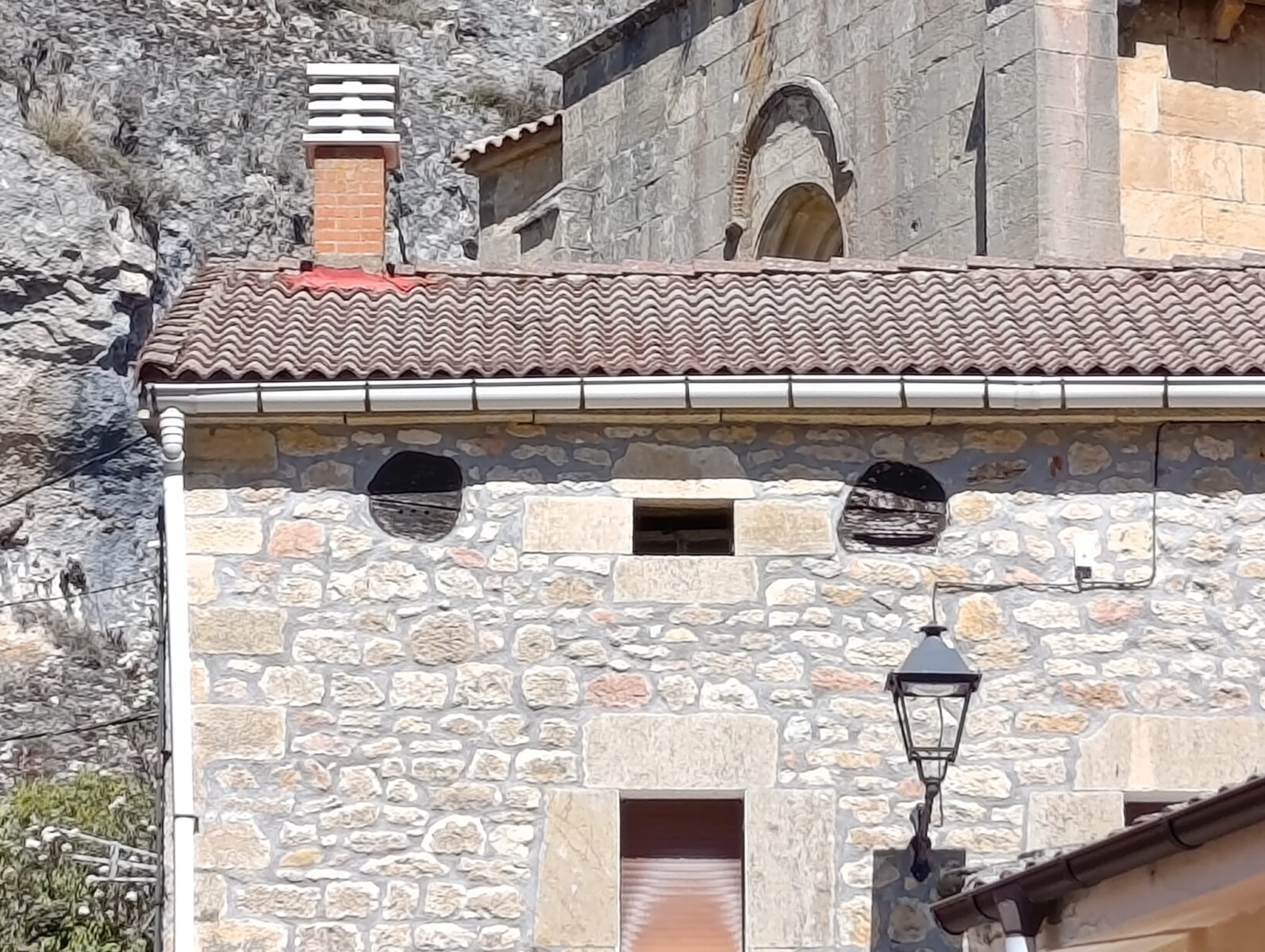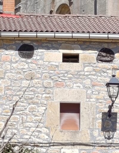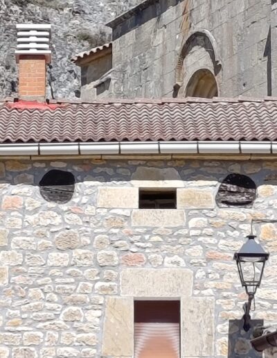 Descripción: Se trata de un Dujo insertado en lo alto de una vivienda, principalmente el desvan, ya que observamos entre medias algún ventanuco pequeño, lindando con el tejado,