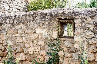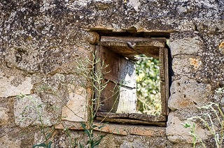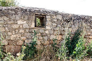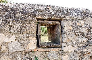 Descripción: Cajon de madera para colmenas, en una tapia de Villañoño.