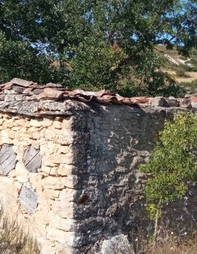 Descripción: Cercana a la carretera nacional 623, no es visible desde ella. La hornillera está rodeada de romero plantado por el apicultor. Tejado caído, todavía se aprecia su interior.