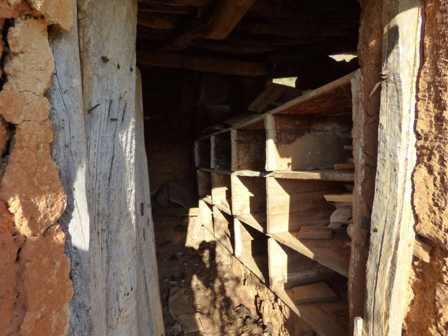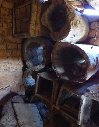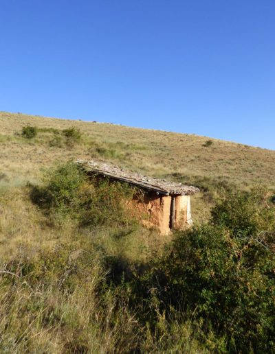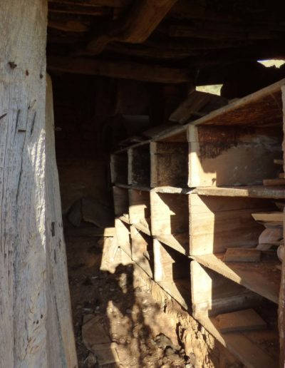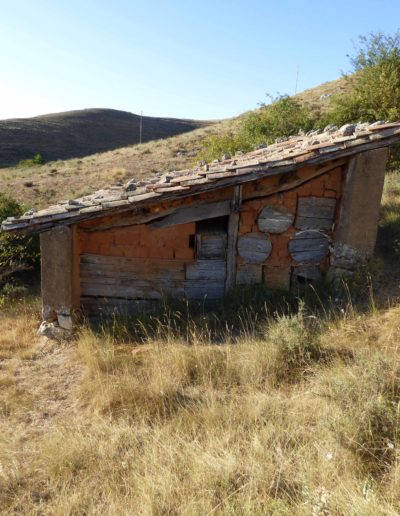 Descripción: Se encuentra en la parte alta de Salazar de Amaya, un poco mas arríba del depósito del agua. Está compuesto por 12 cajones en batería de 4 x 3, 06 dujos de olmo tumbados y tres cajones más. Mariano Barcenilla comenta que cuando era joven cataba la miel de este colmenar y que para extraerlo, lo metían en un saco colgado de una viga y lo iban retorcierdo para sacar la miel fuera y dejar la cera dentro. Que el primer propietario que recuerda era un tal Talayas y después pasó a la familia Renedo.