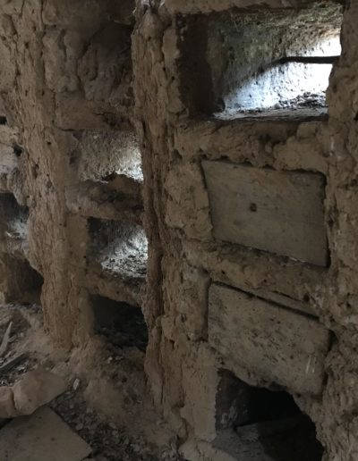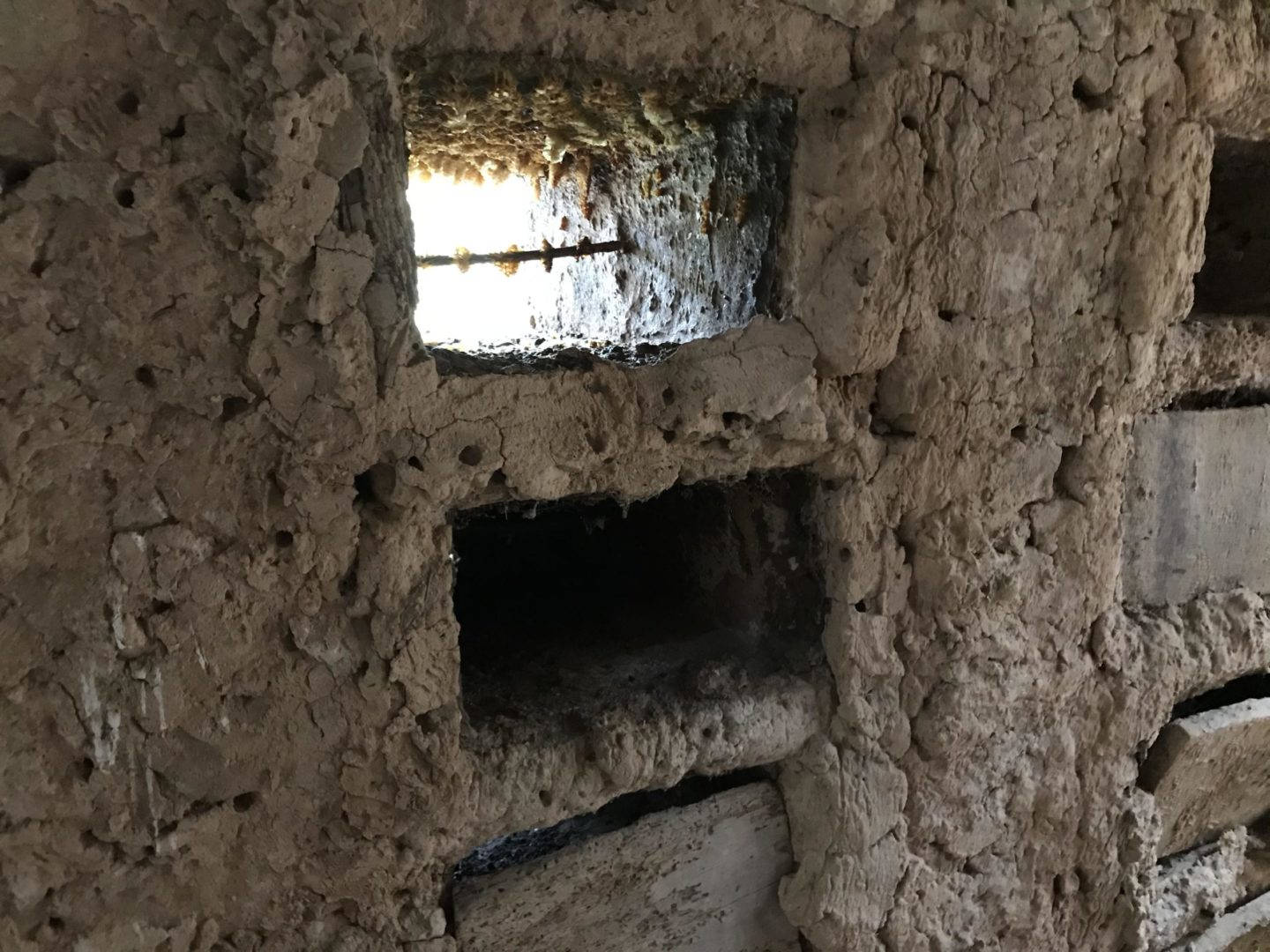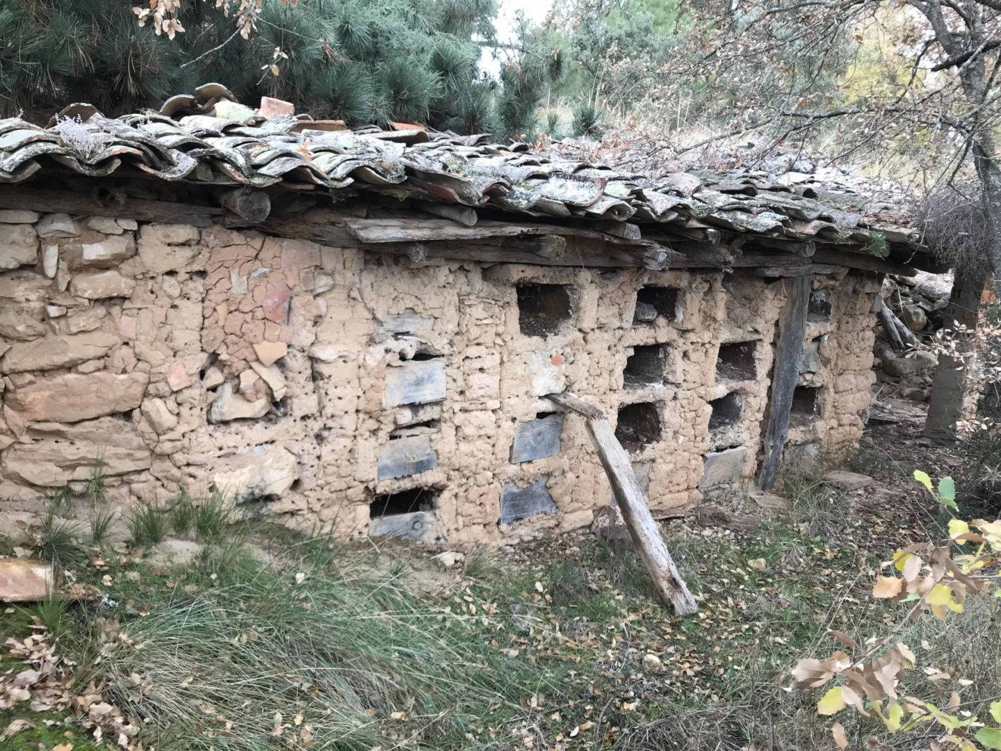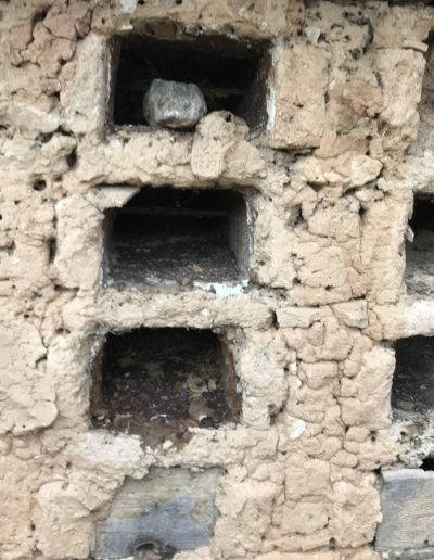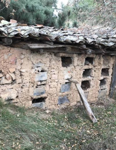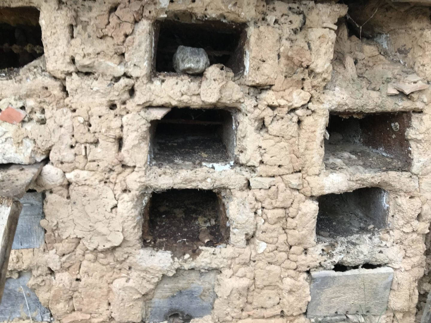 Descripción: Colmenar de nichos de fábrica de adobe, barro y madera en posición horizontal