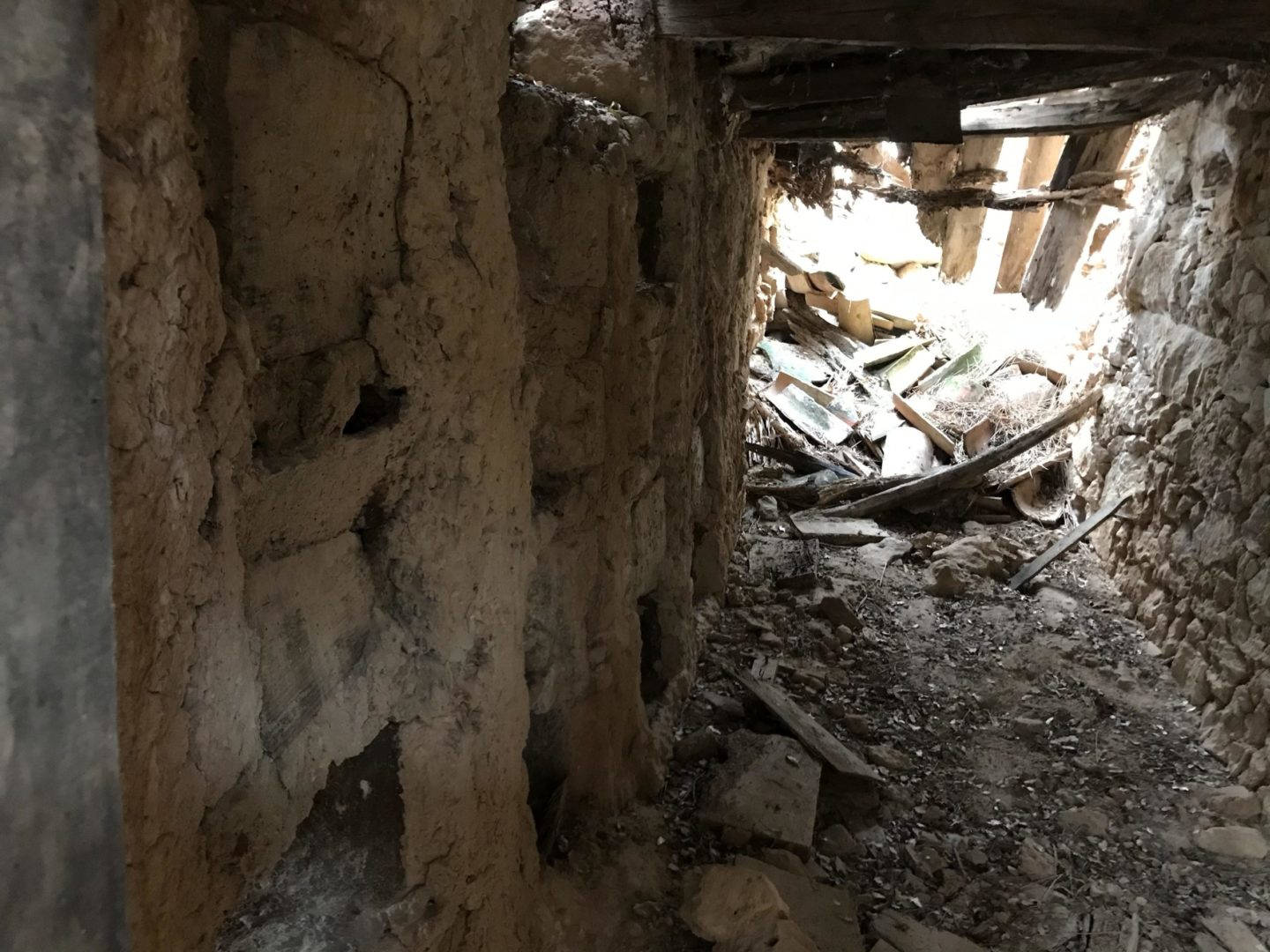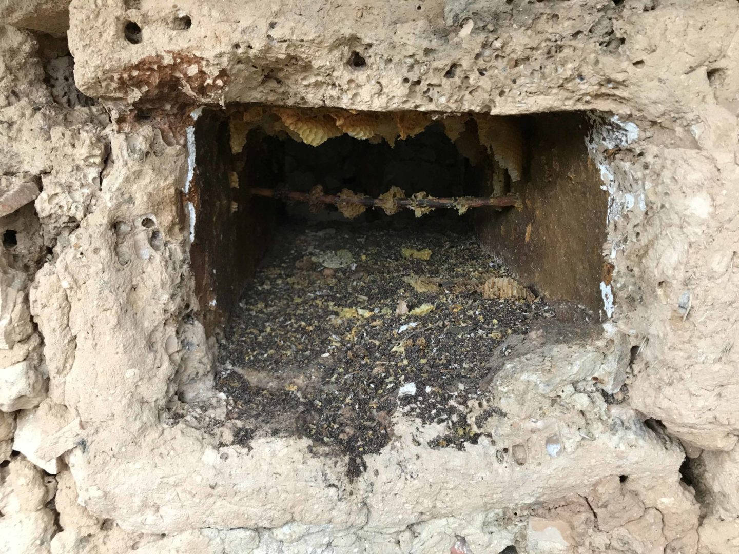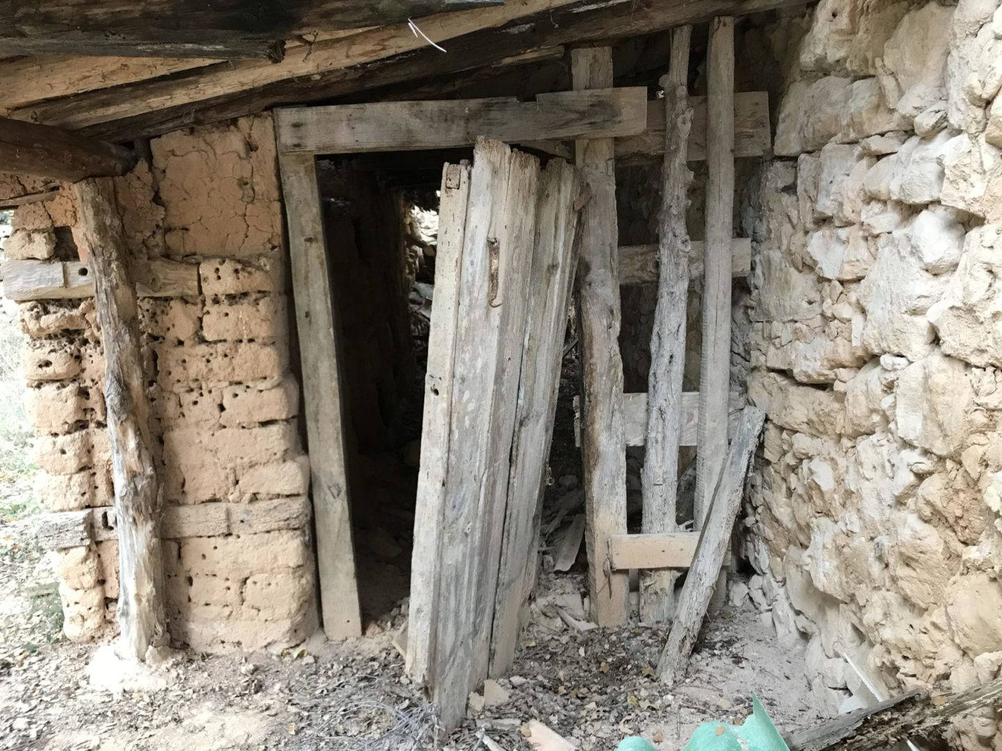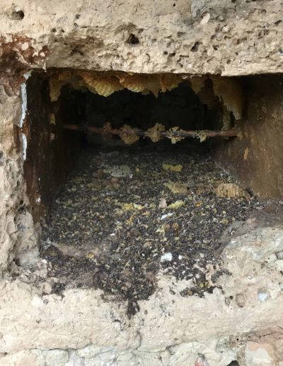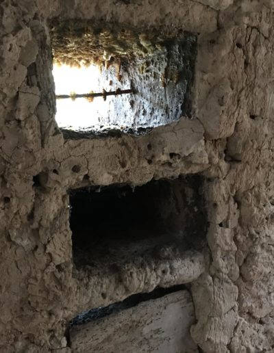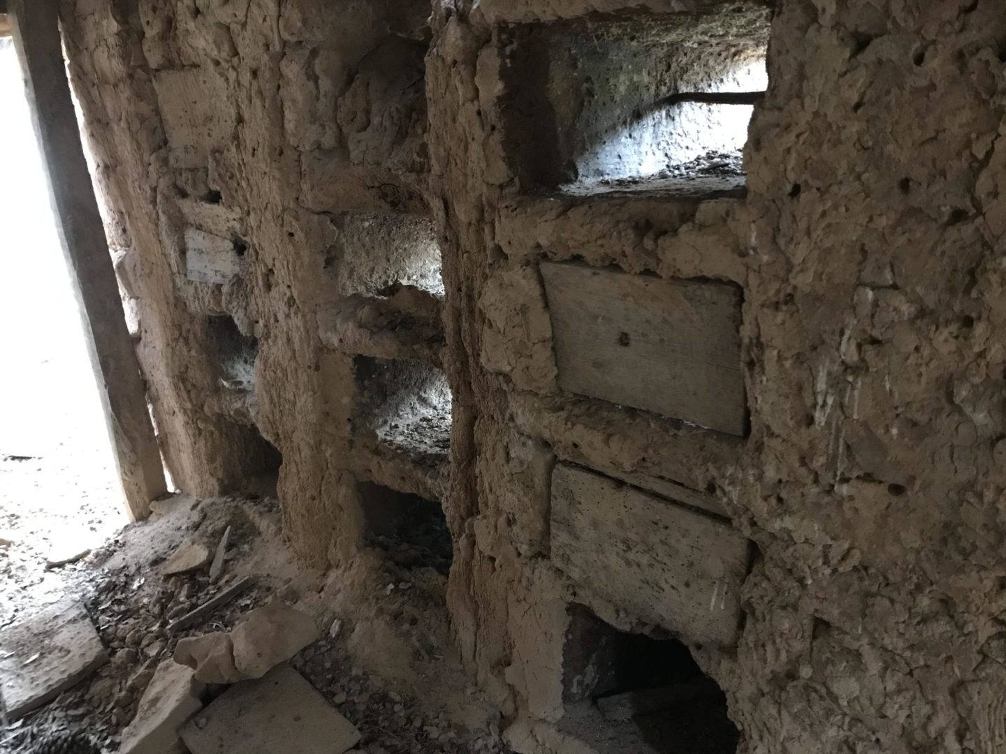 Descripción: Colmenar de nichos de fábrica de adobe, barro y madera en posición horizontal
