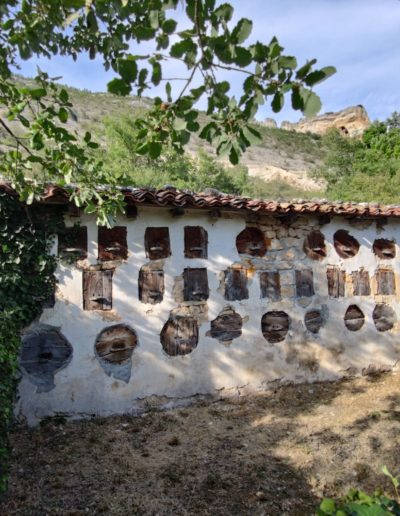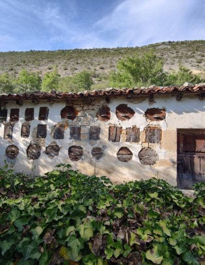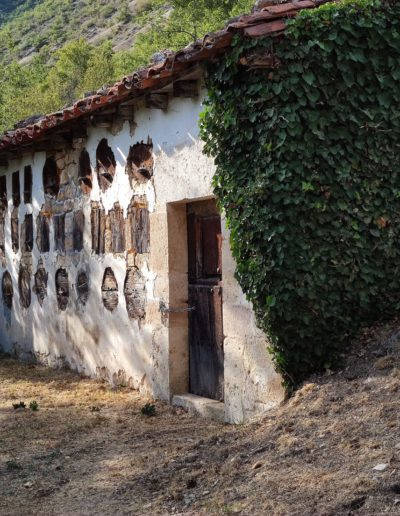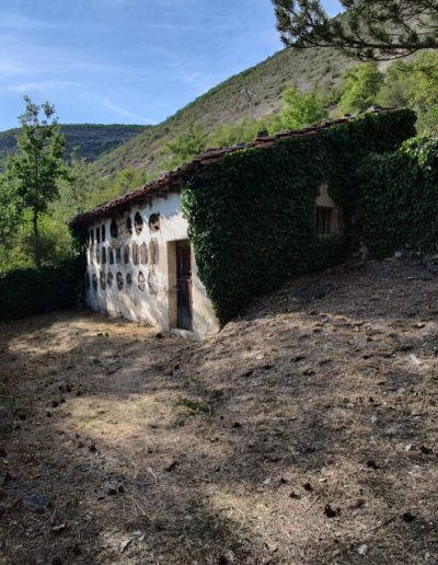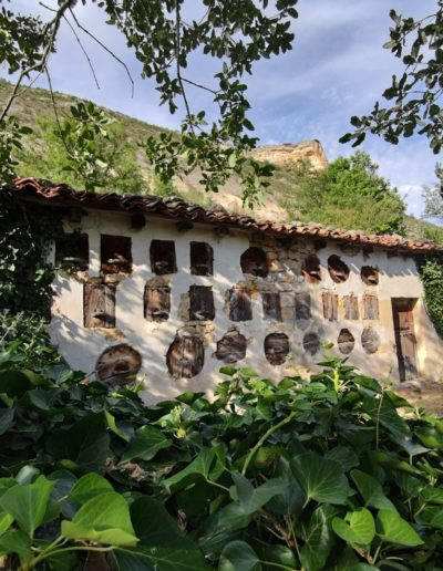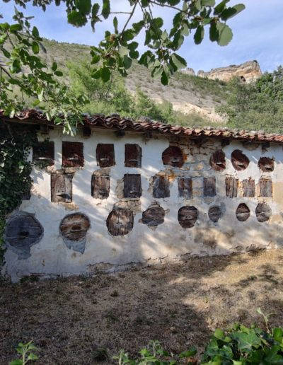 Descripción: Tal vez es uno de los mejores colmenares representativos de la zona del Rudrón. Está justo al lado de la carretera y con un cercado y terreno cuidados. Es una parada obligada para admirar este tipo de construcciones y su sentido en todo el perímetro, ya que le acompaña con arboles frutales. Sin duda un colmenar muy especial.