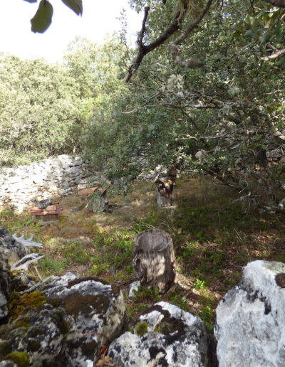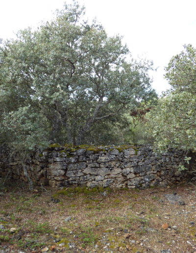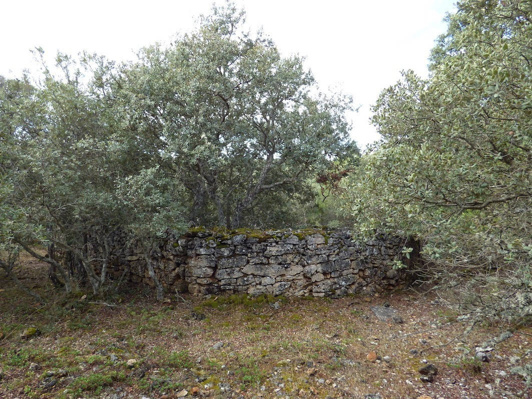 Descripción: Corral con muro de piedra situado junto al camino que parte del cruce con la ermita de la Virgen de la Vega. En el interior hay 6 dujos y un cajón, todos vacíos, en buen estado. El muro de 12 x 6 metros con puerta. Ubicación google maps 41.952946, -3.575823