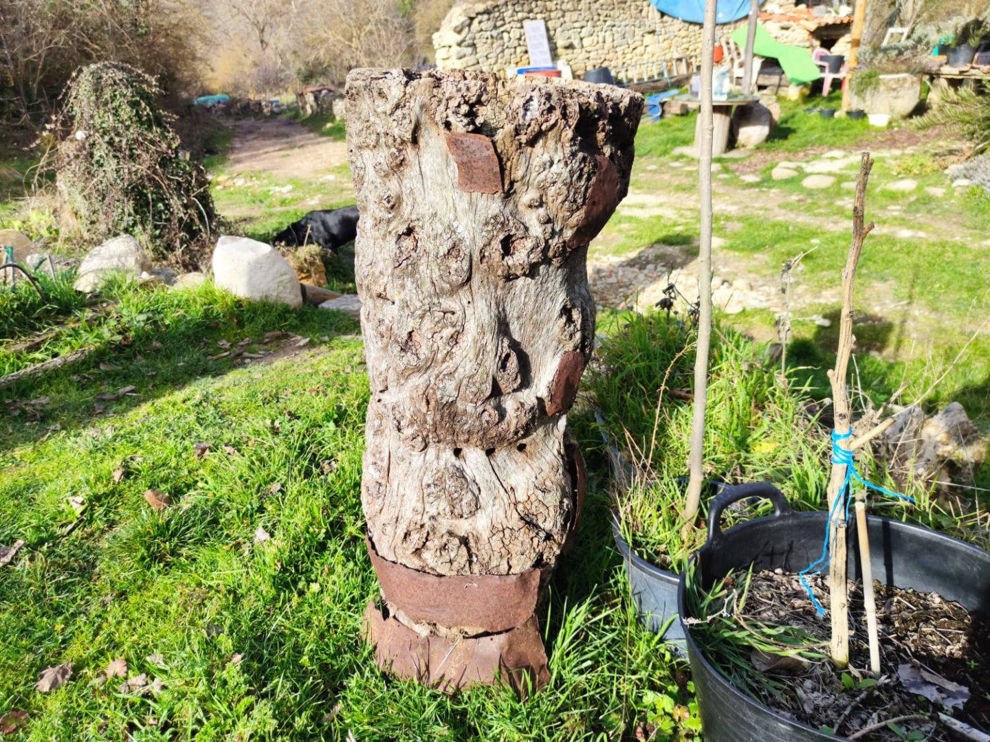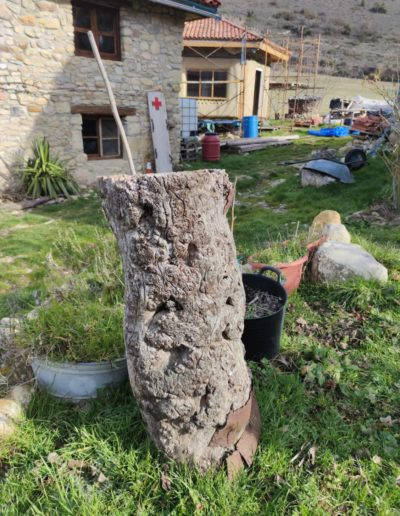 Descripción: Se trata de un Dujo de pie, de una buena altura, dentro de la población y cerca de la fuente. Valmayor es una población que quedó deshabitada en los años 70 y gracias a una persona retomo actividad en los años 90, hasta hoy. Siempre ha sido una localidad muy pequeña y ahora mismo solo alberga 3 habitantes. Este dujo ubicado dentro de la población no supondría ningún peligro para sus habitantes, si las abejas estuvieran trabajando en él.