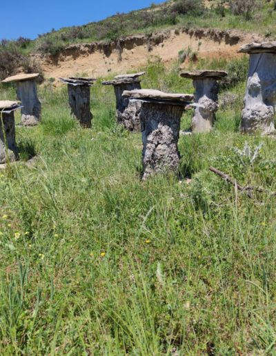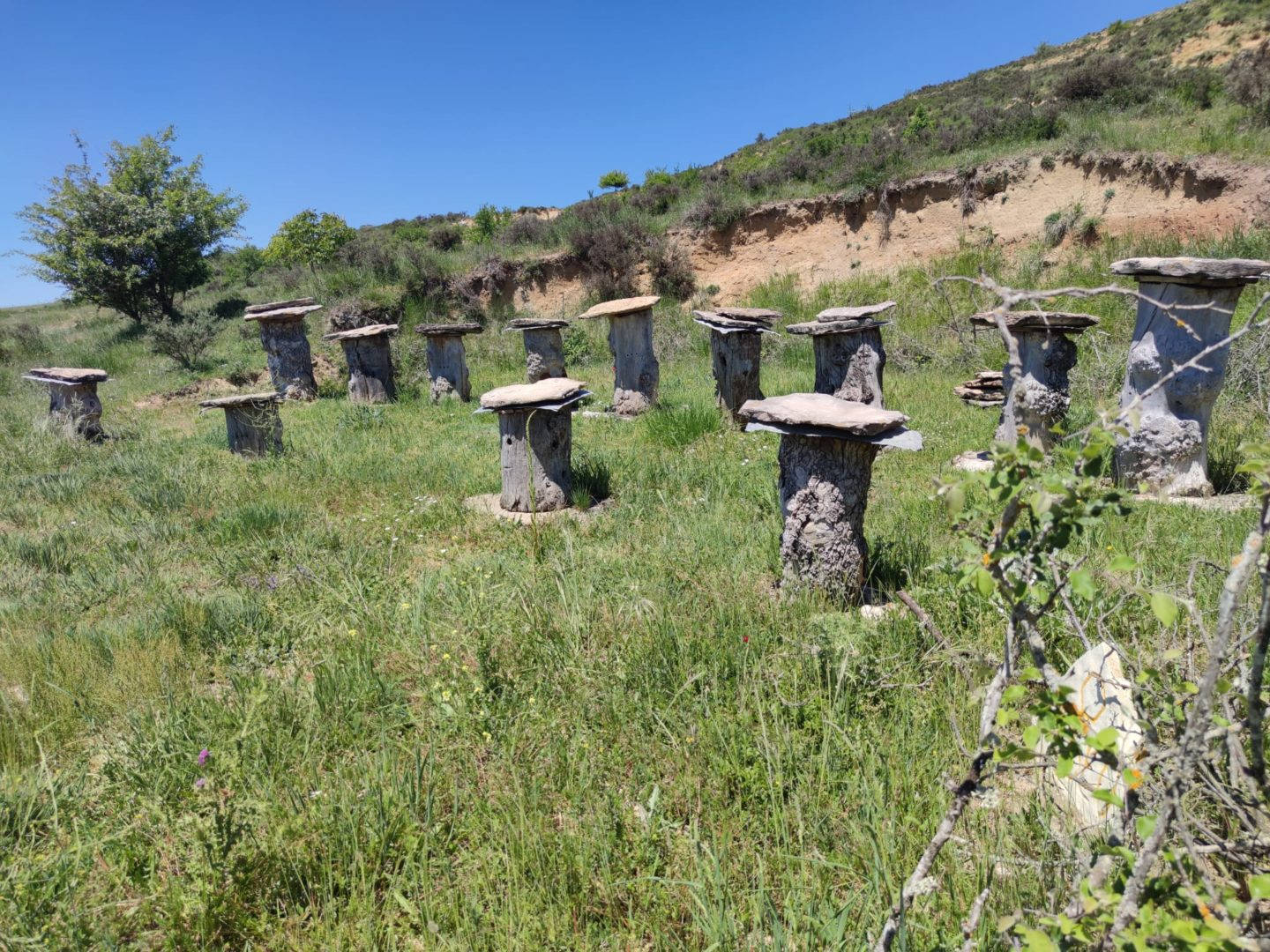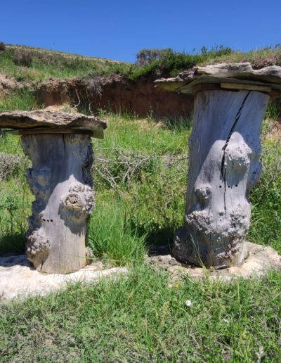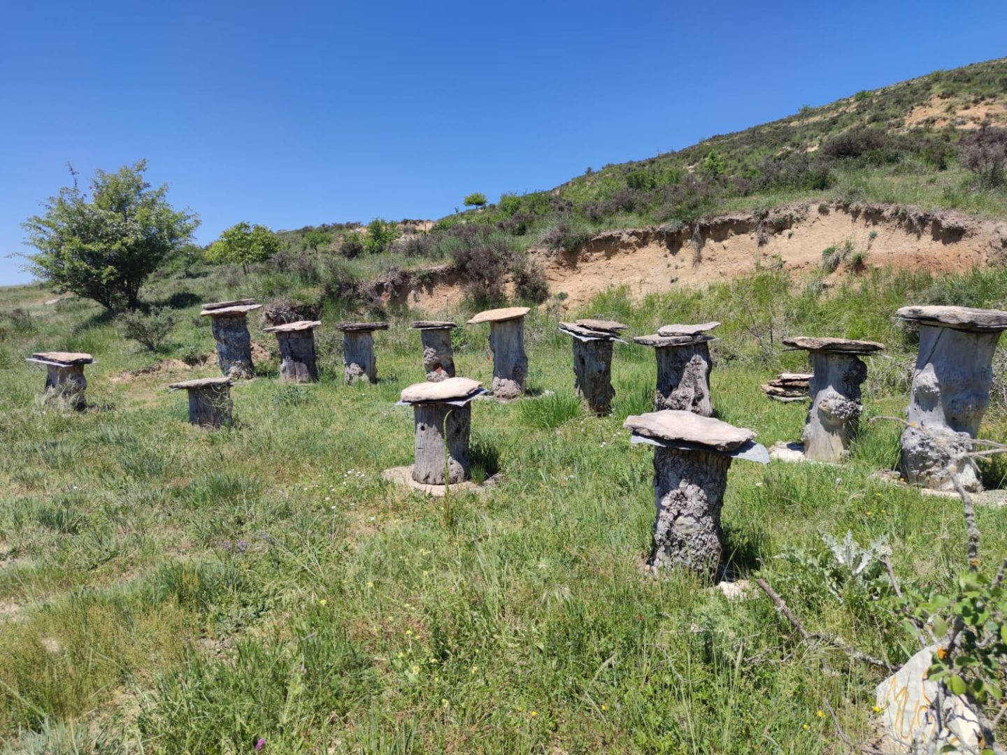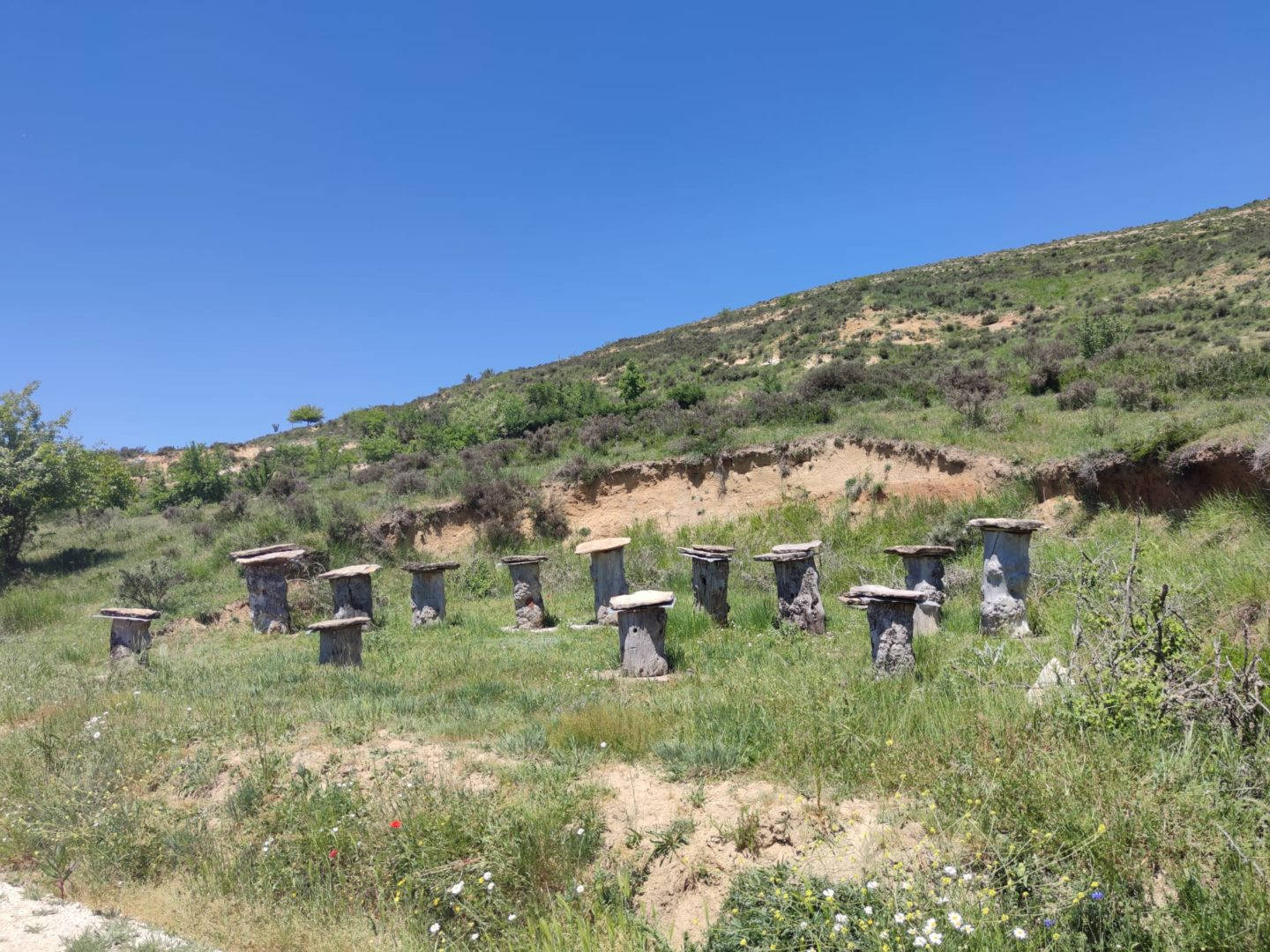 Descripción: Nos encontramos con un ejemplo visitable de colmenar tradicional, pienso y por lo que me comentan en la zona, este colmenar nace como pequeño museo a la apicultura tradicional, posiblemente aprovechando un desmonte de la ladera, para el camino que transita hasta la nave ganadera, se ha instalado una serie de Dujos antiguos, con su bases de piedra y losas de piedra, que sin duda merece la pena visitar. en un lateral hay una placa en barro, que pone Museo, pero no por ello cabe destacar el cuidado y respeto que se ha tenido.