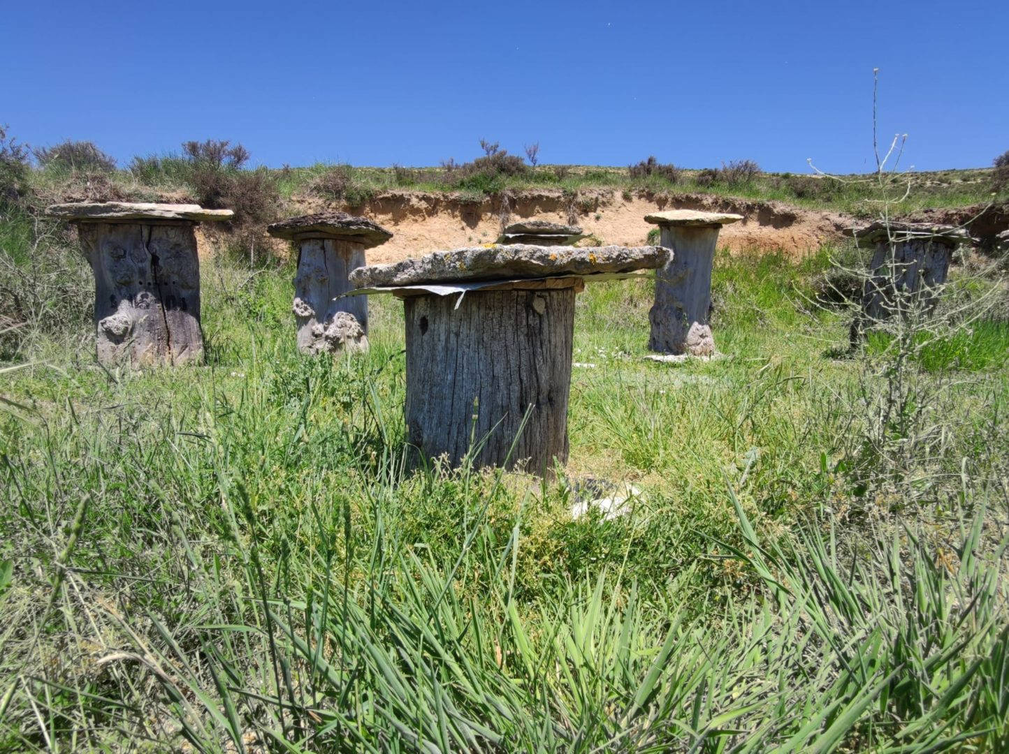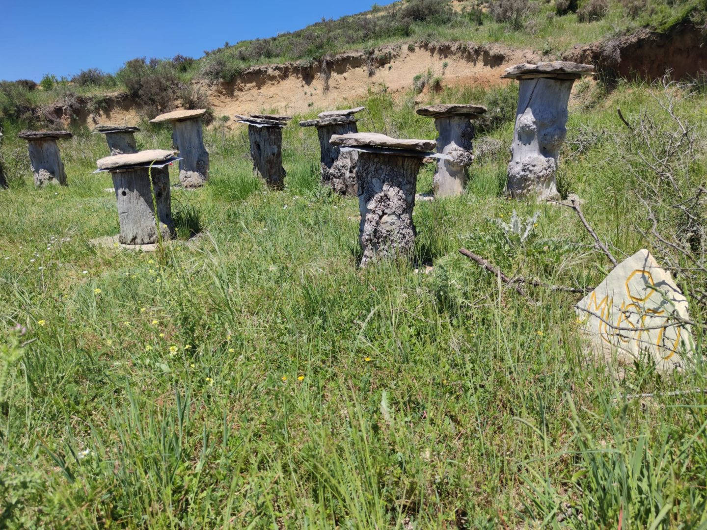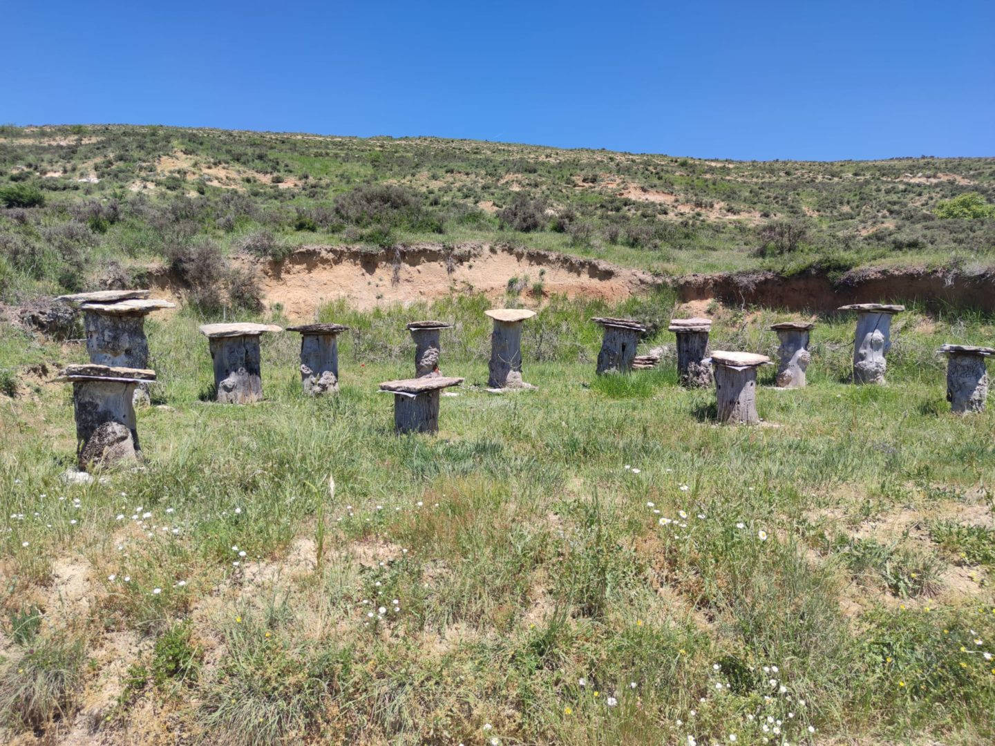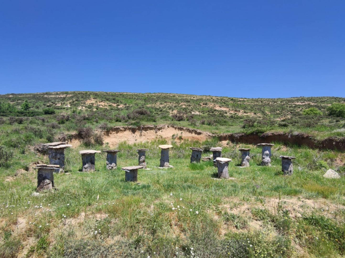 Descripción: Nos encontramos con un ejemplo visitable de colmenar tradicional, pienso y por lo que me comentan en la zona, este colmenar nace como pequeño museo a la apicultura tradicional, posiblemente aprovechando un desmonte de la ladera, para el camino que transita hasta la nave ganadera, se ha instalado una serie de Dujos antiguos, con su bases de piedra y losas de piedra, que sin duda merece la pena visitar. en un lateral hay una placa en barro, que pone Museo, pero no por ello cabe destacar el cuidado y respeto que se ha tenido.