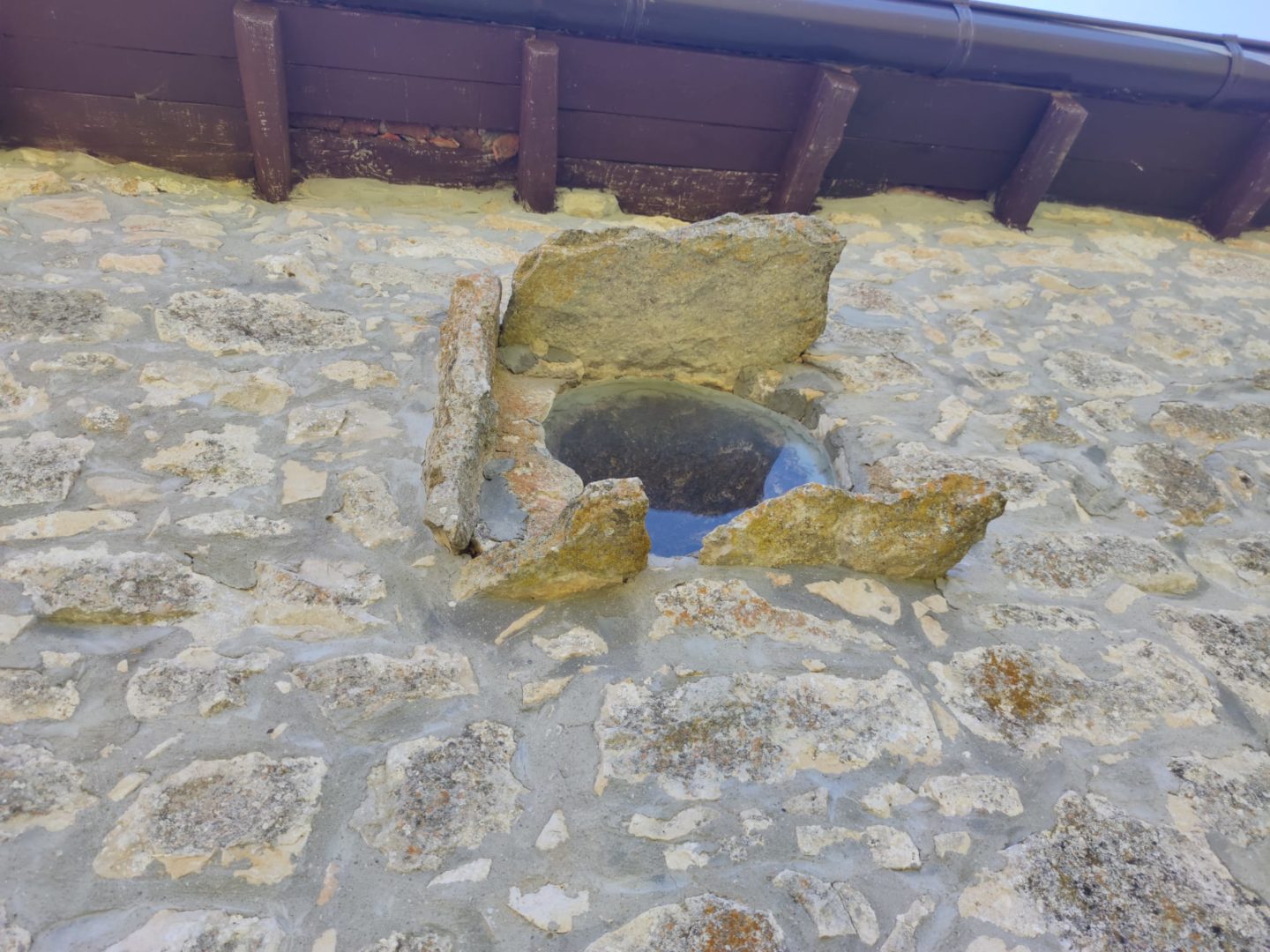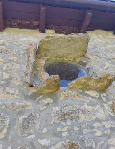 Descripción: Se trata de un solo Dujo en vivienda, tal vez de lo más curioso es que esa colocado en la parte de atrás de la vivienda, practicamente mirando al norte, que no es lo normal ya que apenas recibe los rayos solares, el Dujo se conserva, pero se han retirado la tapa y se ha colocado un cristal o metacrilato, que permite ver el interior del mismo desde fuero, lo que permite ver restos de cera todavía en él.