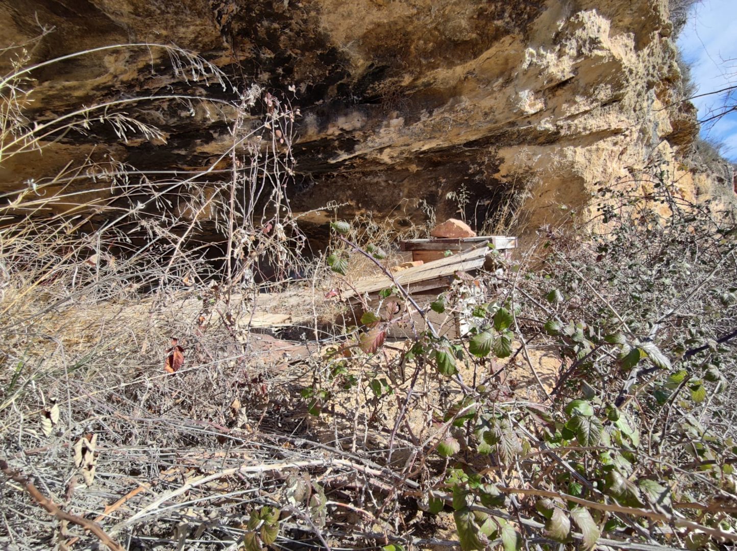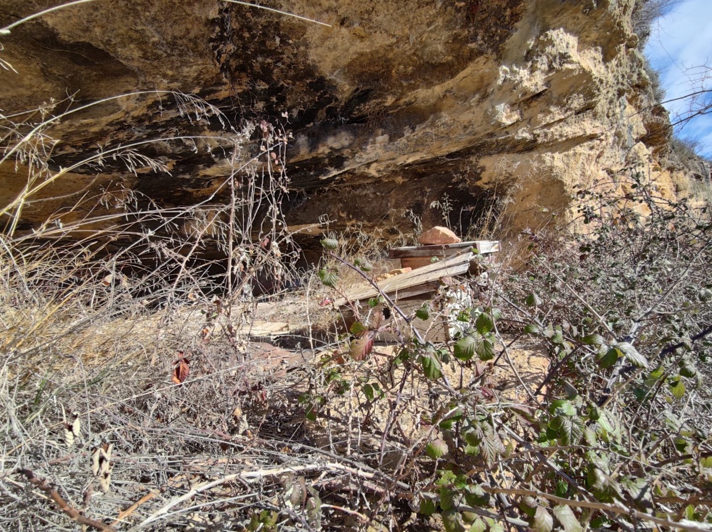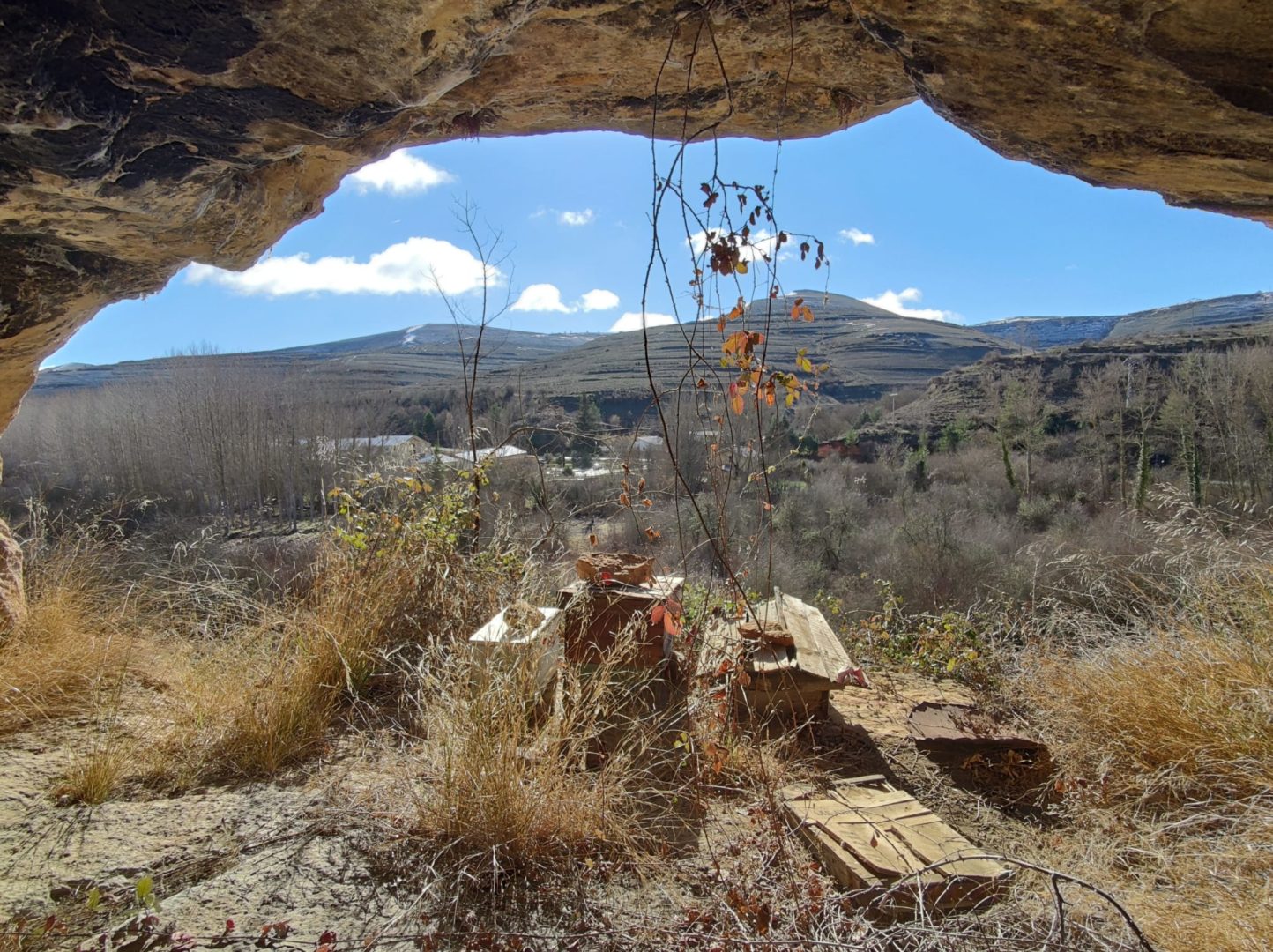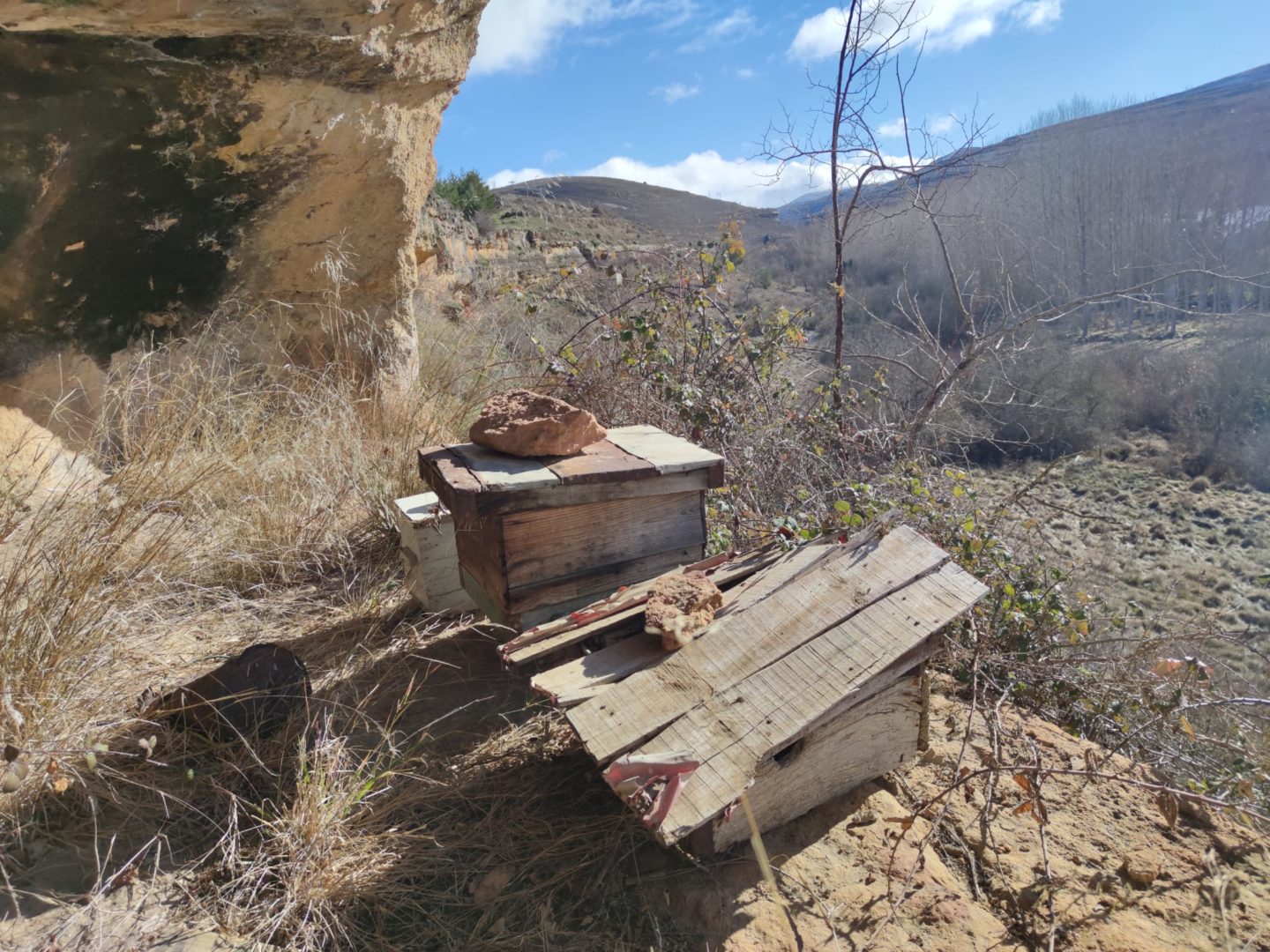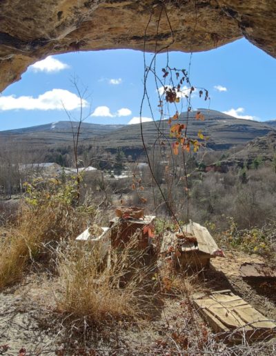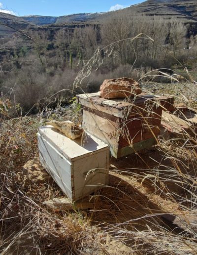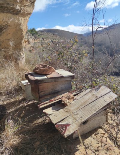 Descripción: Justo debajo de la iglesia de Sedano, se encuentra una cueva, donde encontramos cuatro colmenas. nos cuentan en la zona, que en aquel actual, pequeño colmenar abandonado, vivio una mujer durante muchos años y que posteriormente se utilizo como colmenar. la cueva es profunda y da perfectamente para aprovechar como vivienda o lo que se pretenda, en ella encontramos algunos restos de madera, que simulan un muro o pared tumbado. las colmenas están abandonadas, cabe destacar que alguna es una caja artesanal que es lo que más valor encontramos, junto a una colmena más moderna.