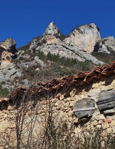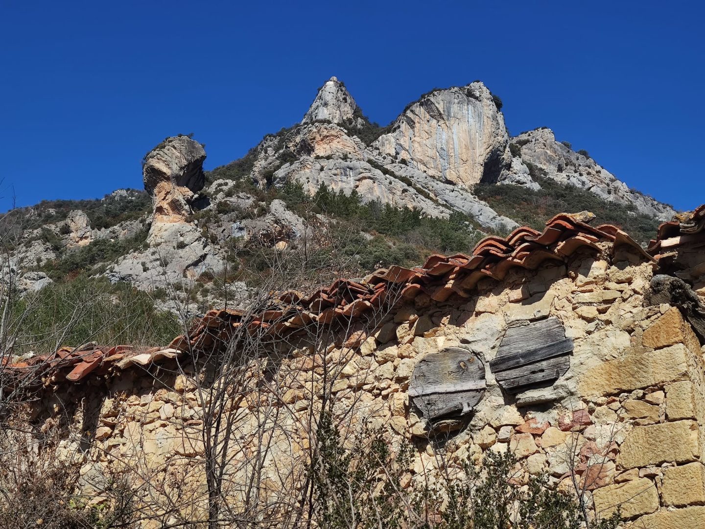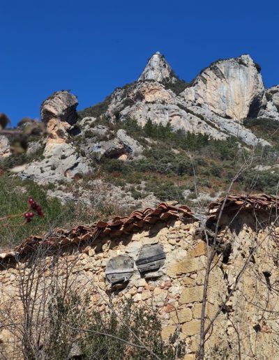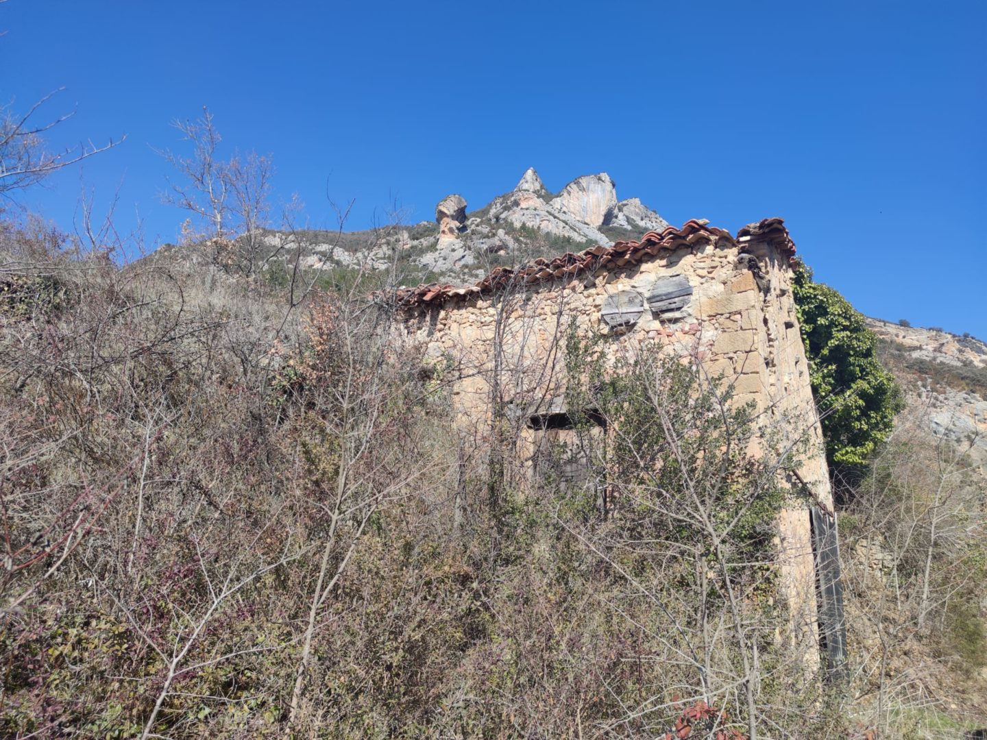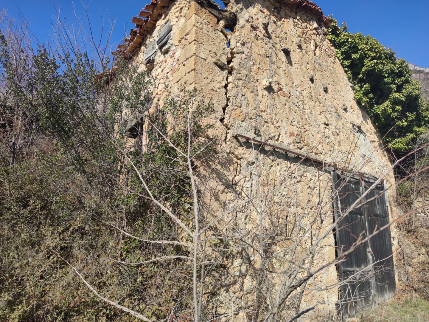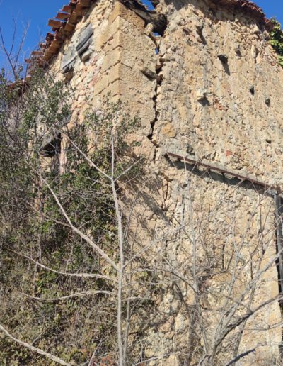 Descripción: Se trata de Dos Dujos en lo que parece ser un almacén de aperos, maquinaria o incluso pajar de la localidad, esta un poco apartado de las casas, no mucho, pero lo suficiente, a ello, se le suma un portón corredero grande, como para poder meter dentro carros o demás maquinaria del campo en sus tiempos. estos Dujos se sitúan en la parte alta de un lateral que mira al sur, pero ya se observan daños importantes en el edificio, lo cual hace pensar en el peor destino para todo ello.
